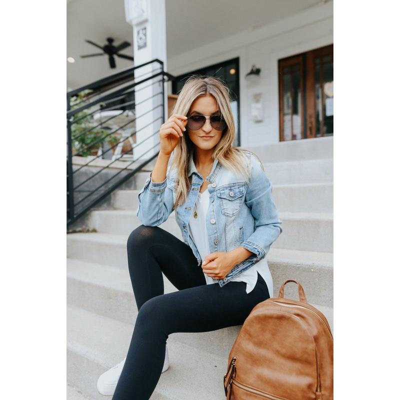 Add this essential denim jacket staple to your closet! This denim jacket comes in a faded light wash design that hits right at the waist and features front pockets and functional buttons. Wear it over your favorite top or dress for an extra casual layering piece!