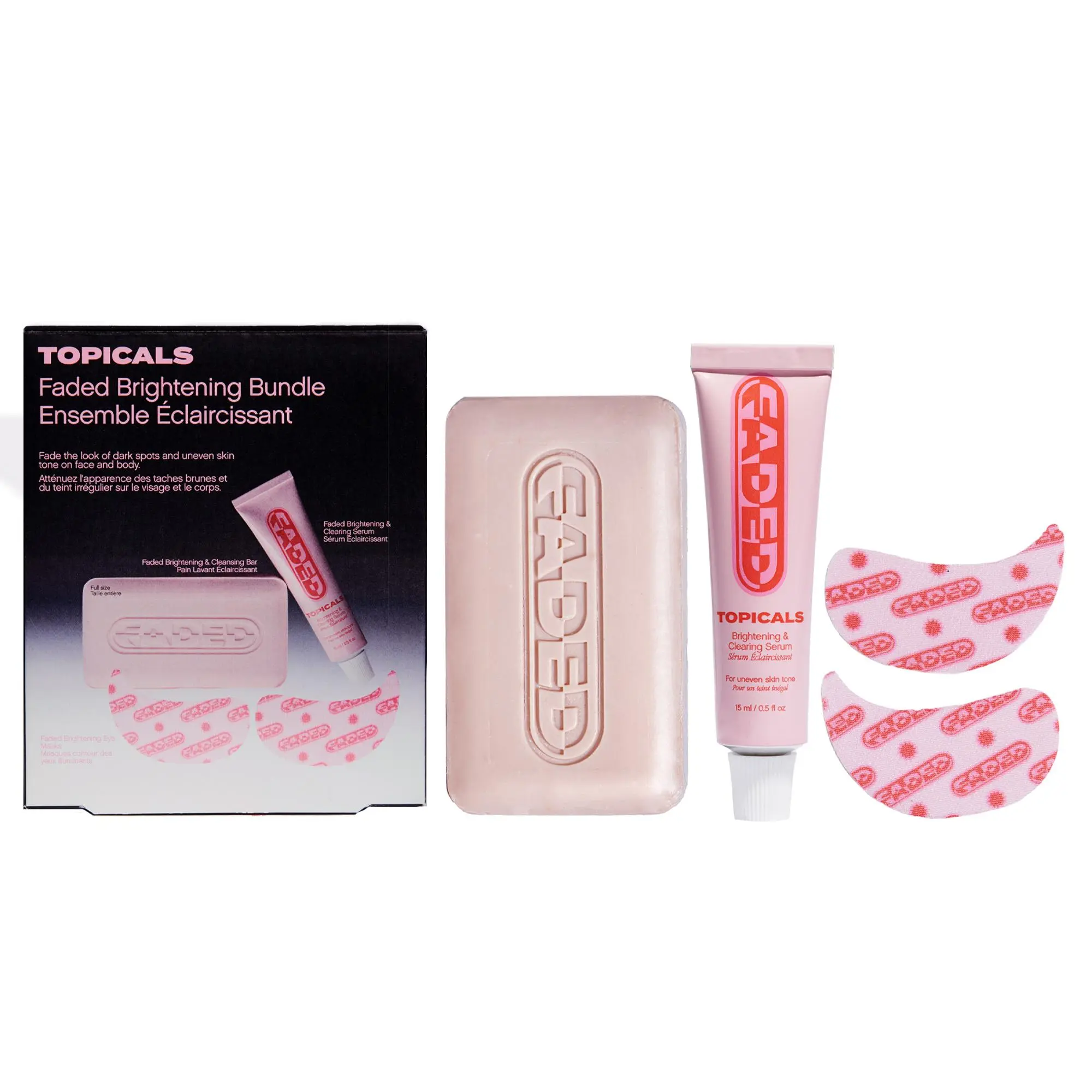 Fade the look of dark spots and uneven skin tone on face and body with this brightening trio. Whether you're experiencing post-breakout marks or spots on your face, under-eye, or inner thighs, there is a Faded product expertly designed to target your area of concern. Each product is specially formulated with an award-winning blend of brightening ingredients to be most effective for the specific area you're targeting without stripping the skin.