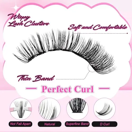 𝐄𝐚𝐬𝐲 𝐭𝐨 𝐔𝐬𝐞 & 𝐁𝐞𝐠𝐢𝐧𝐧𝐞𝐫 𝐅𝐫𝐢𝐞𝐧𝐝𝐥𝐲: Our lash clusters are easy to apply at home, perfect for beginners with no professional skills needed. Customize your look as you wish, and in just minutes enjoy full, beautiful lashes. The professional and gentle eyelash bond and seal make the clustered eyelashes waterproof and long-lasting