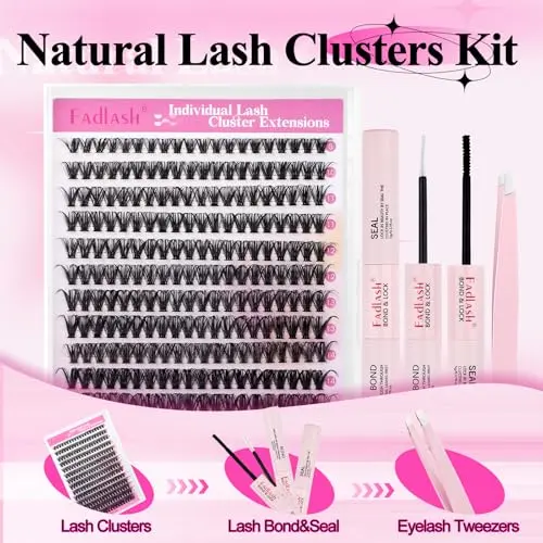 𝐄𝐲𝐞𝐥𝐚𝐬𝐡 𝐄𝐱𝐭𝐞𝐧𝐬𝐢𝐨𝐧 𝐊𝐢𝐭: You will receive a FADLASH eyelash extension kit, which includes 1 separate tray of eyelashes, 1 eyelash tweezer, and 1 eyelash bond and seal. Everything you need is here. Using this eyelash clusters kit will be more convenient and save time