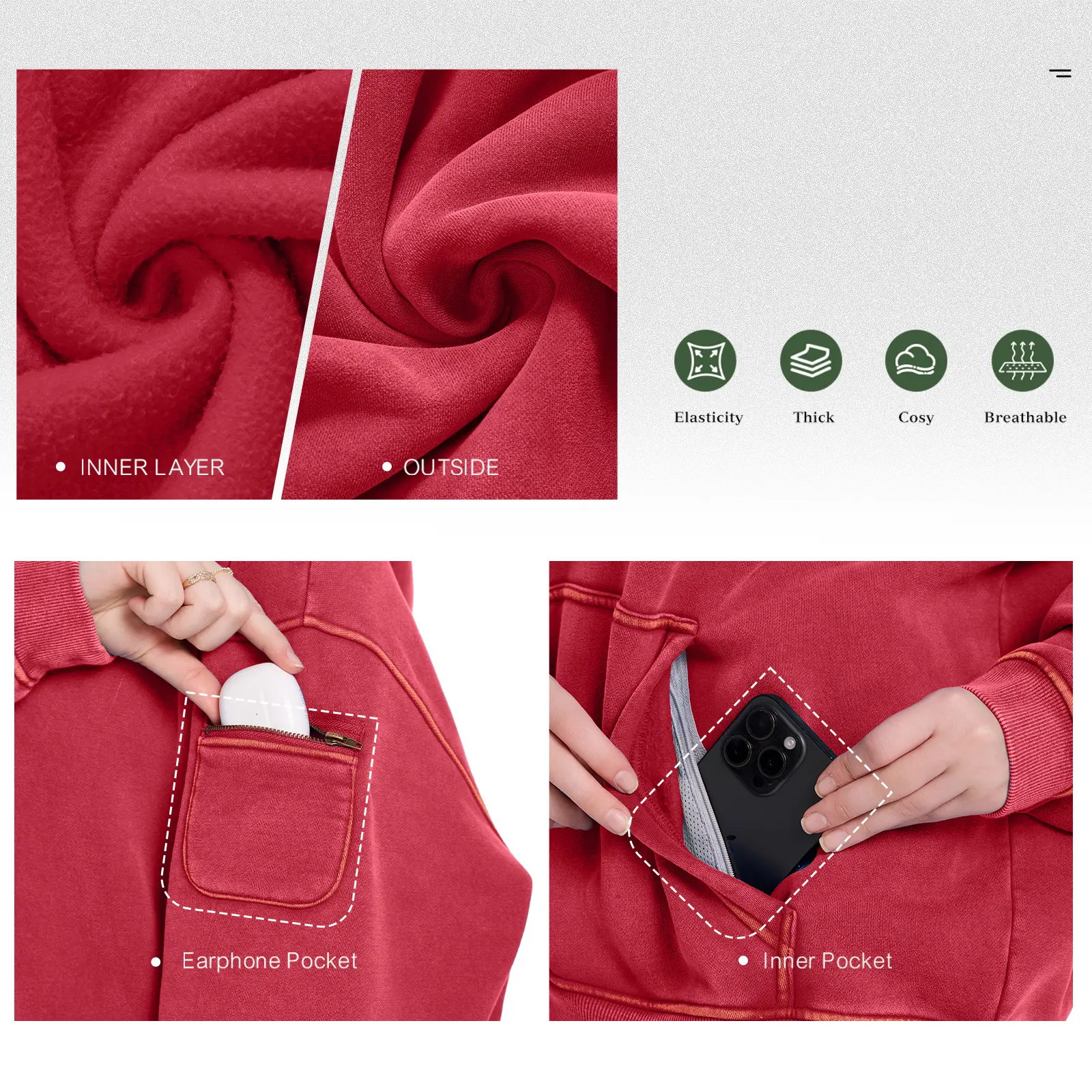 Made from soft, warm fleece fabric, this hoodie ensures ultimate comfort. It combines the casual style of a hoodie with the functionality of a light jacket. Ideal for various activities, from outdoor adventures to casual lounging.