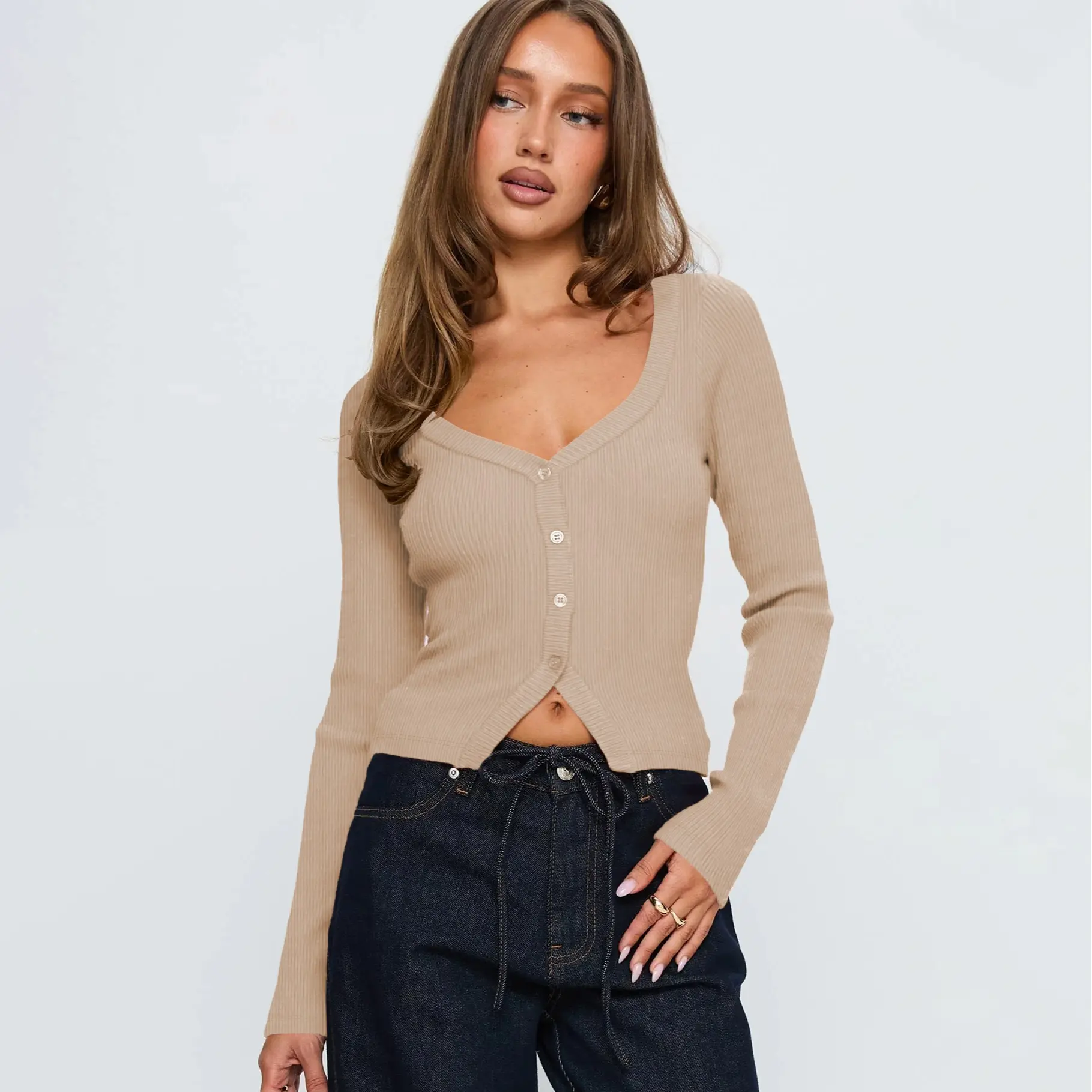 ·Versatile styling: Can be worn alone or layered as a cardigan.