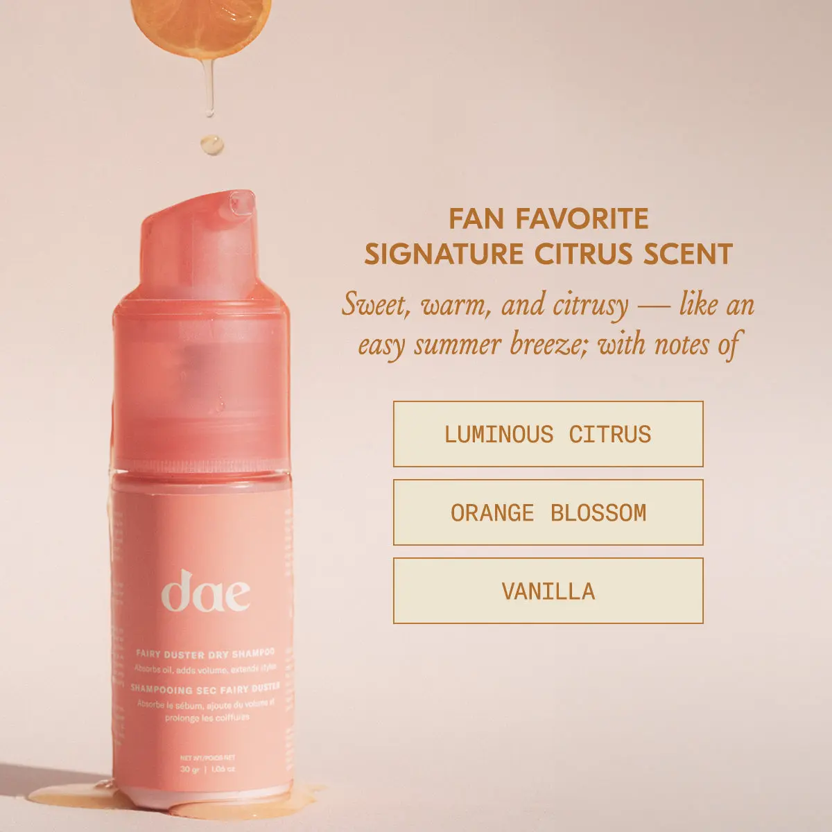 I have tried so many dry shampoos and nothing compares to Dae. Love the way it absorbs in my hair, love how clean it feels and love the smell. Definitely a favorite and will continue ordering it!