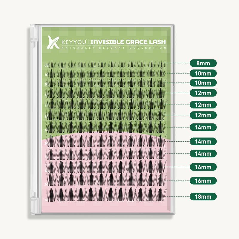 The KEYYOU Natural Invisible Band Lash Clusters Kit is a premium false eyelash set designed to help users achieve a lightweight, natural manga-style lash effect with ease. Here are the key features and selling points:
