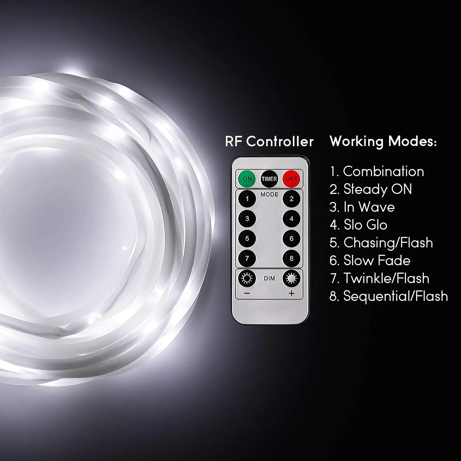 DECORATION HOLIDAY FAIRY STRING ROPE LIGHTS W/ REMOTE - 33FT - BATTERY POWERED