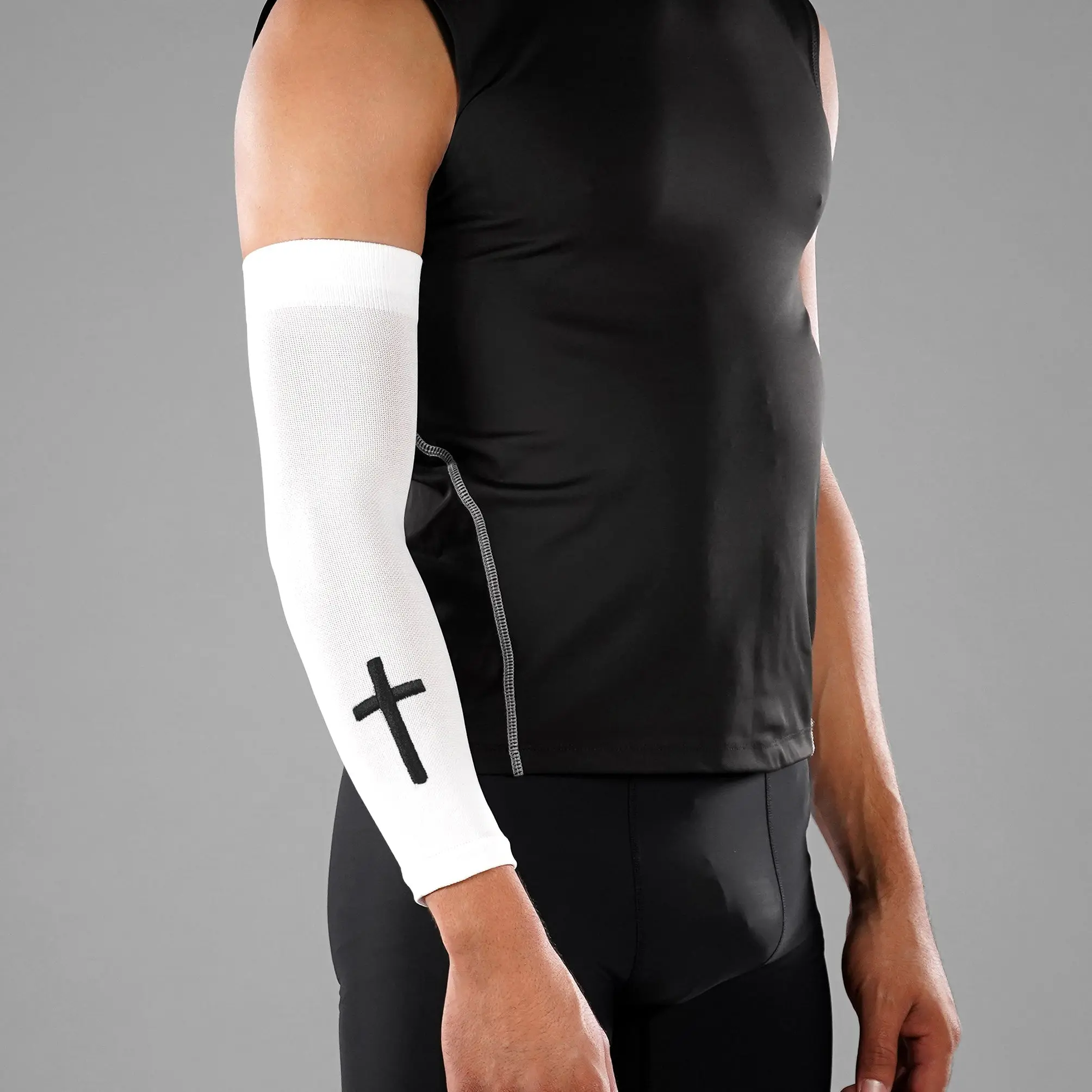 Discover the ultimate support and comfort with our Faith Cross Black One Size Fits All Arm Sleeve. Designed using state-of-the-art spandex fabric, these compression sleeves offer unparalleled UVA/UVB protection, making them perfect for both sunny days and rigorous sports activities.