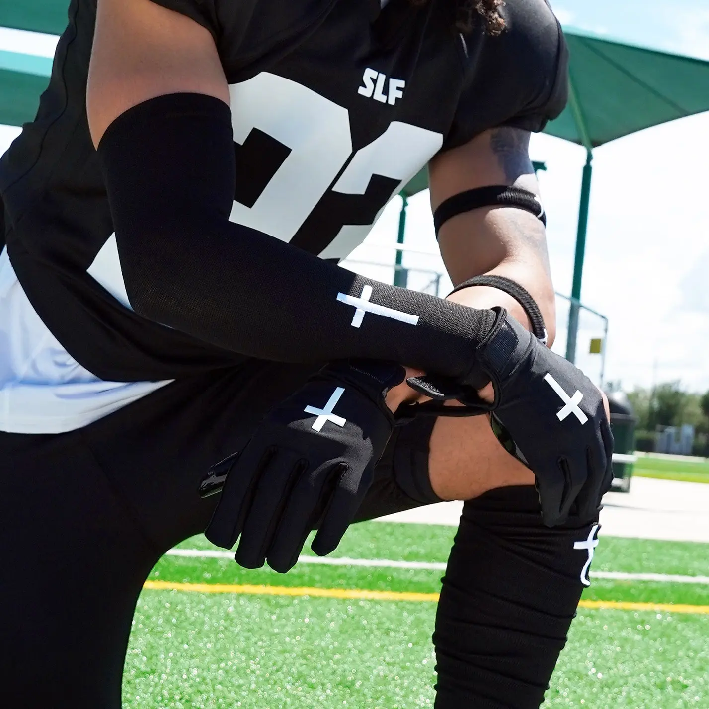 Experience the ultimate in performance with Sleefs Faith Cross Black Sticky Football Receiver Gloves, expertly designed to elevate your game. Crafted with innovative, ultra-sticky material, these gloves ensure maximum grip and durability in any playing condition, allowing you to focus on making elite-level plays without compromise.