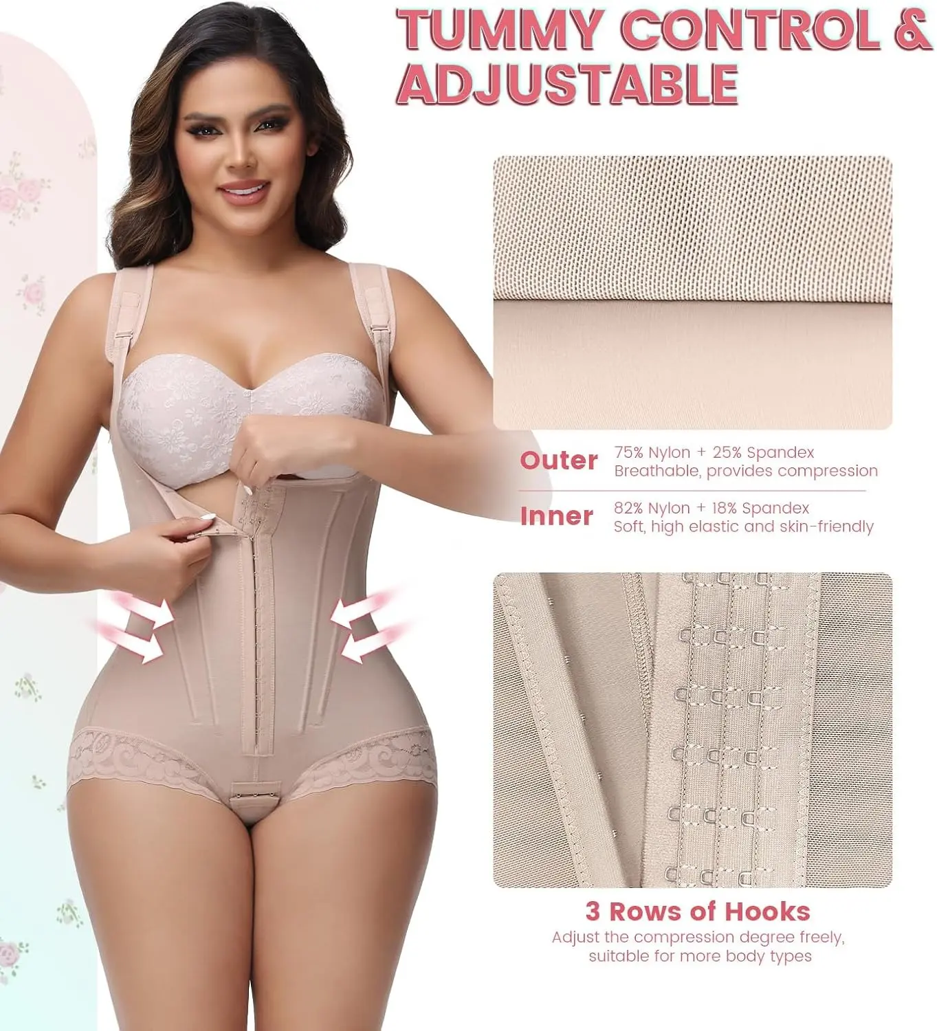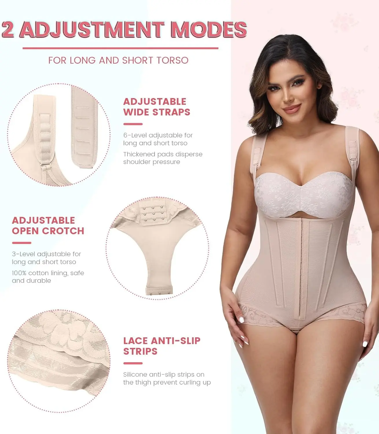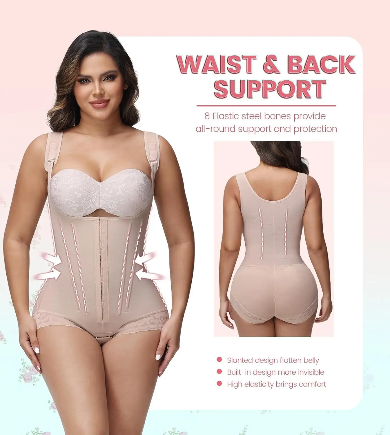 BUTT LIFTER & BREAST SUPPORT: The faja shapewear adopts stretchable suture tech, helps tighten your bottom and lift up your hips. Combined with single-layer elasticity fabric, creating rounder and more lifted butts. The U-shaped design of the chest fits to human body curve, and the wide shoulder straps help gather and lift your breast. You're only one body shaper away from an hourglass figure