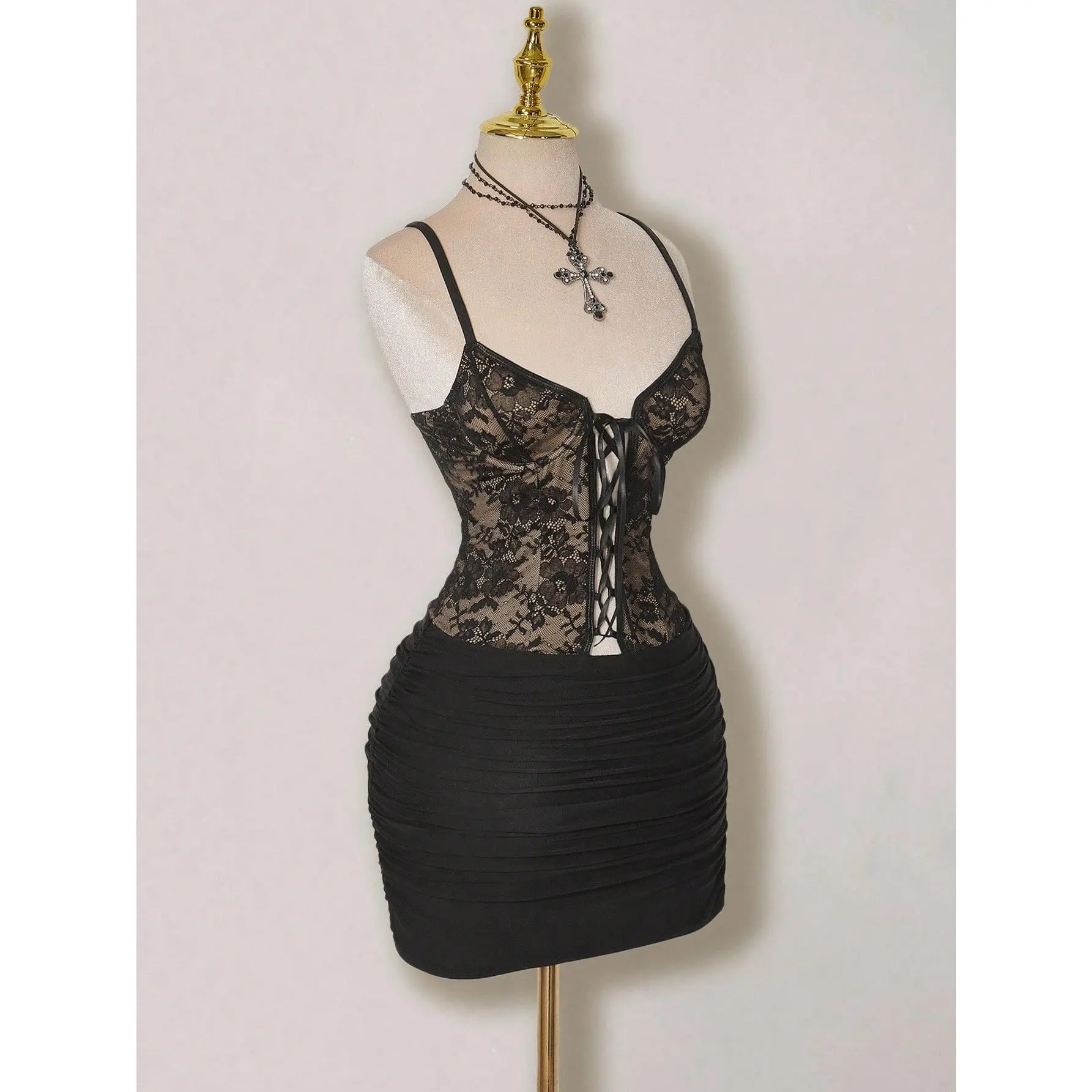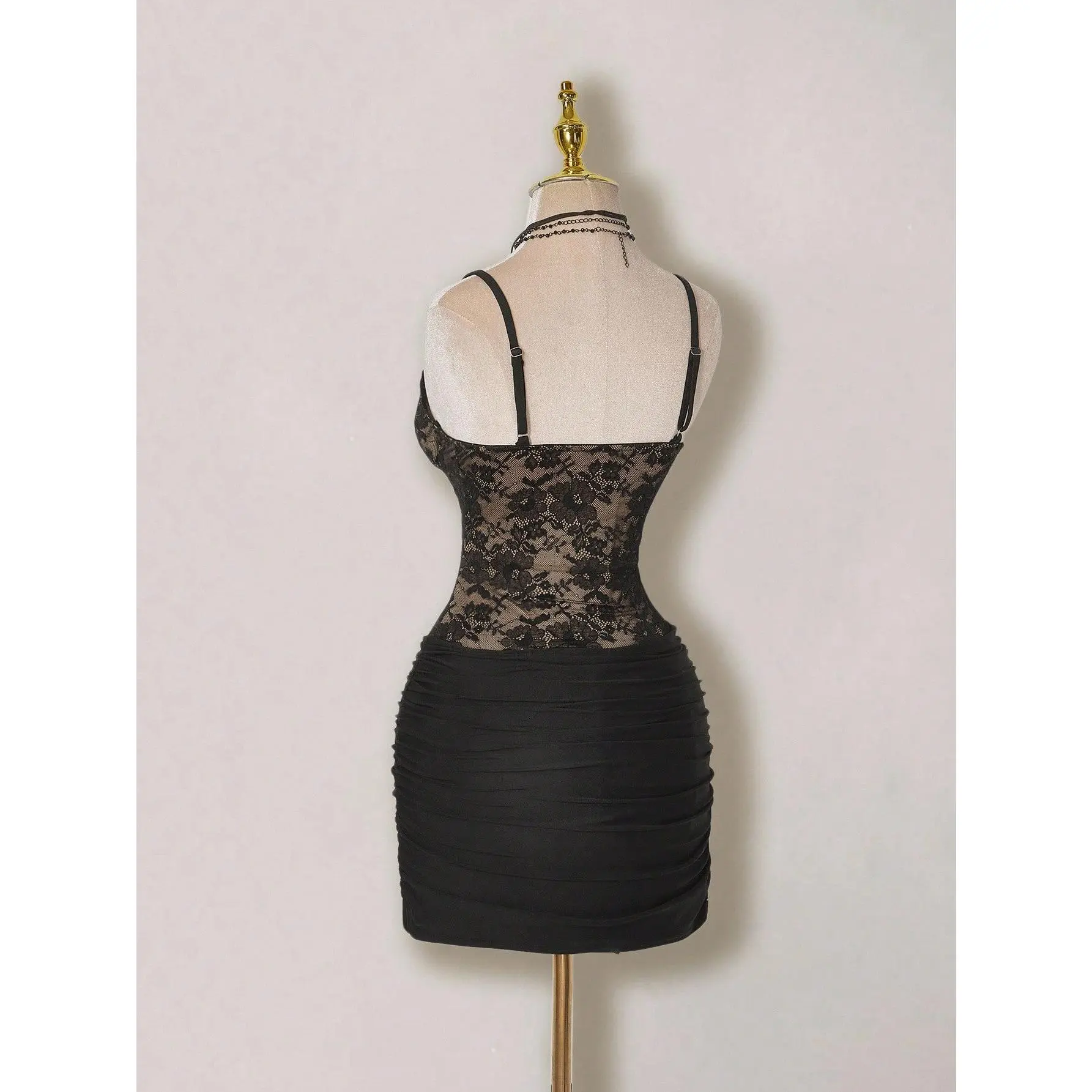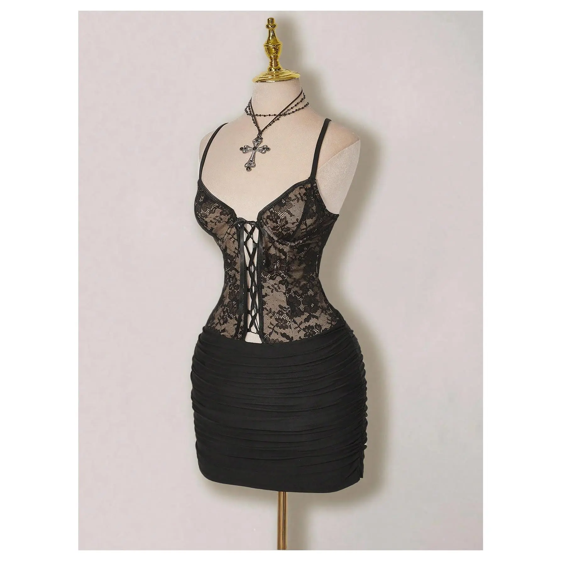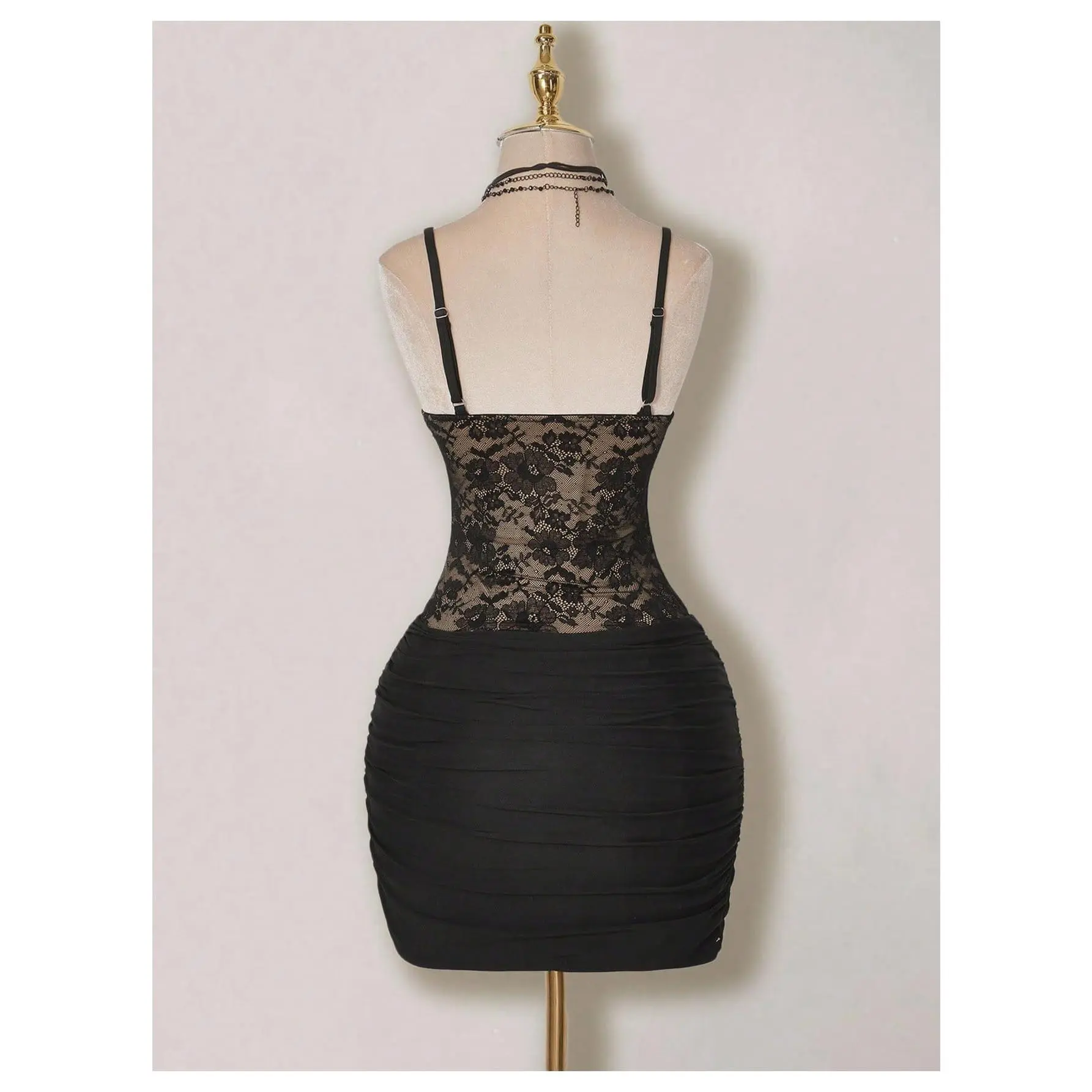 Features: Contrast lace, spaghetti strap, see through, short dress dresses for women clubwear
