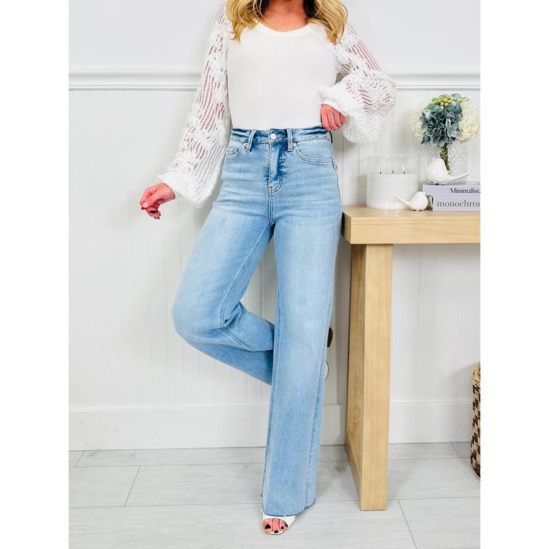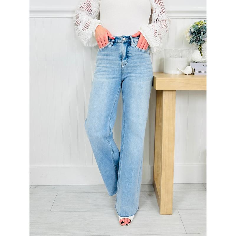 The next chapter in your wardrobe is here with these new wide leg jeans that are perfect to transition into spring. Wide leg style is in and you'll be reaching for these on repeat this season. These jeans feature our viral tummy control panel that is going to suck you in and slim you out in all the right places for a boost of confidence that you didn't know was possible! Every woman of every shape and size looks (and feels) amazing in these jeans.