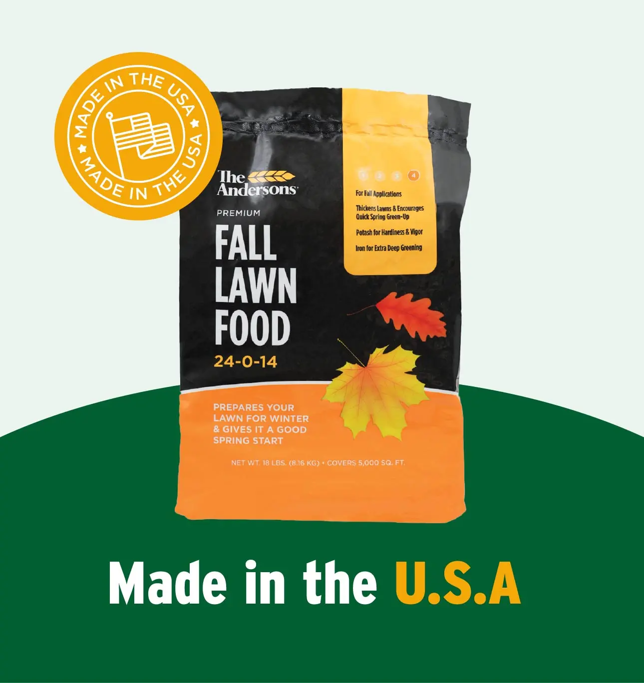 The Andersons Premium Fall Lawn Food 24-0-14 Fertilizer - Includes Nitrogen, Potash & Iron, 1% Iron for Hardiness & Vigor, Made in the USA