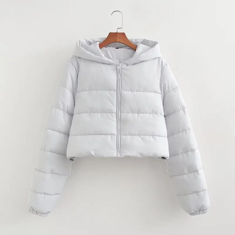 Women Winter Warm Thickened Overcoat Long Sleeve Solid Color Cardigan Short Coat Jacket With Hood And Zipper