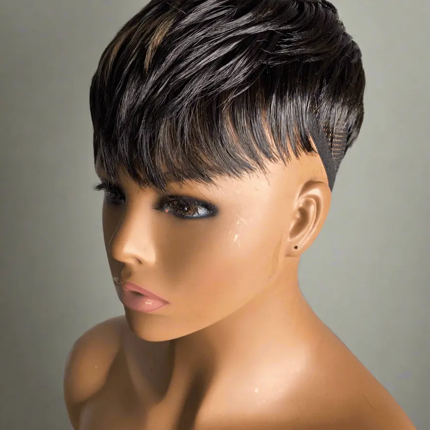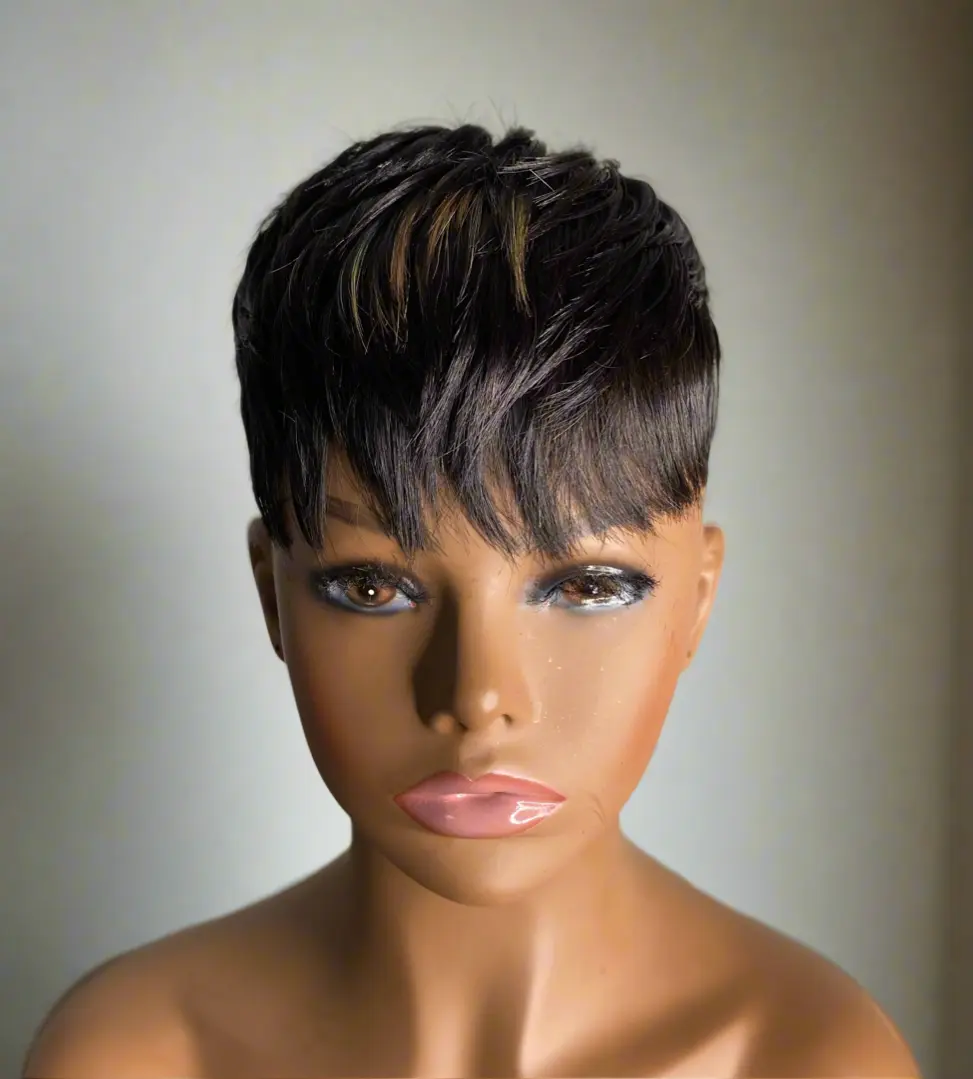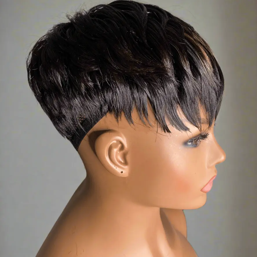 FALLON Quick Weave Pixie “Topper” Made for Women with Short Hair, Thinning Crown ,Bald Spots..perfect for adding volume and fullness to your hair. COLOR: Black with Gray Streaks