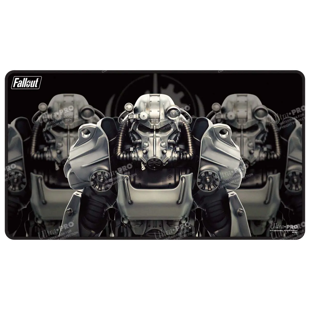 This playmat features artwork for Fallout - Brotherhood of Steel and black stitched edges for an added premium feel. Each playmat is made with a soft fabric top to reduce damage to cards during play, and the non-slip rubber backing keeps the playmat from shifting during use. With dimensions of approximately 24 in. x 13.5 in., a playmat also makes an excellent oversized mousepad for home or office