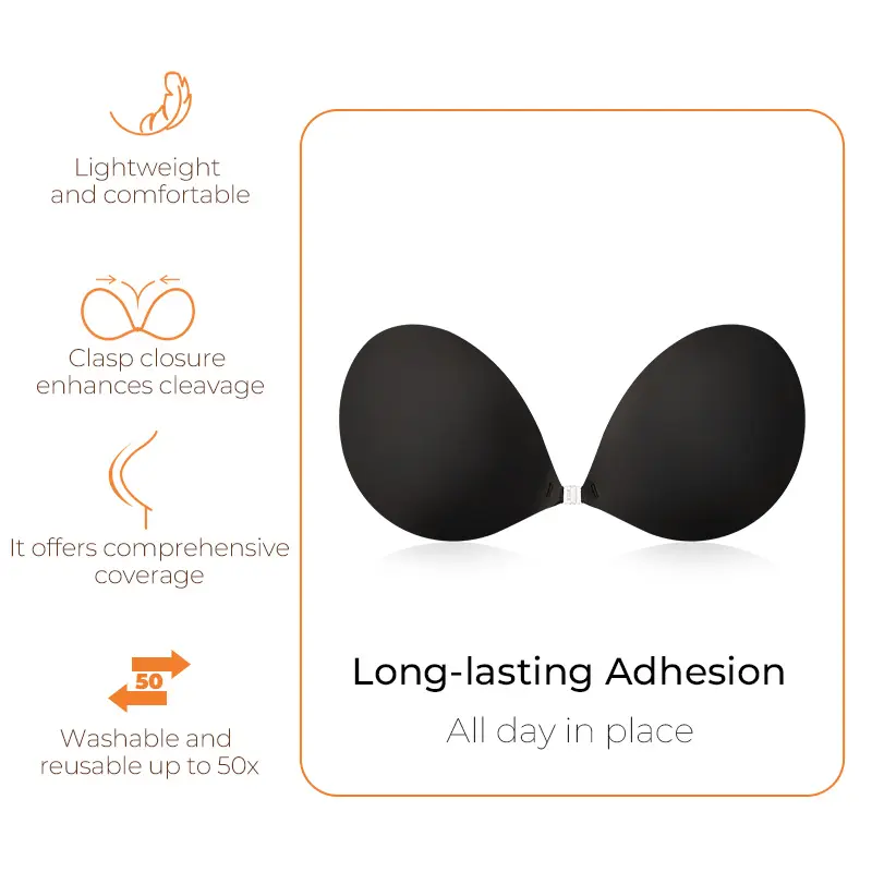 【EASY-CLEANING & REUSABLE】This strapless bra can be reusable for many times with good maintain. Only need to simply wet the adhesive surface with warm water and mild detergent and then air to dry it. It will still keep the adhesive gels for your next time using.
