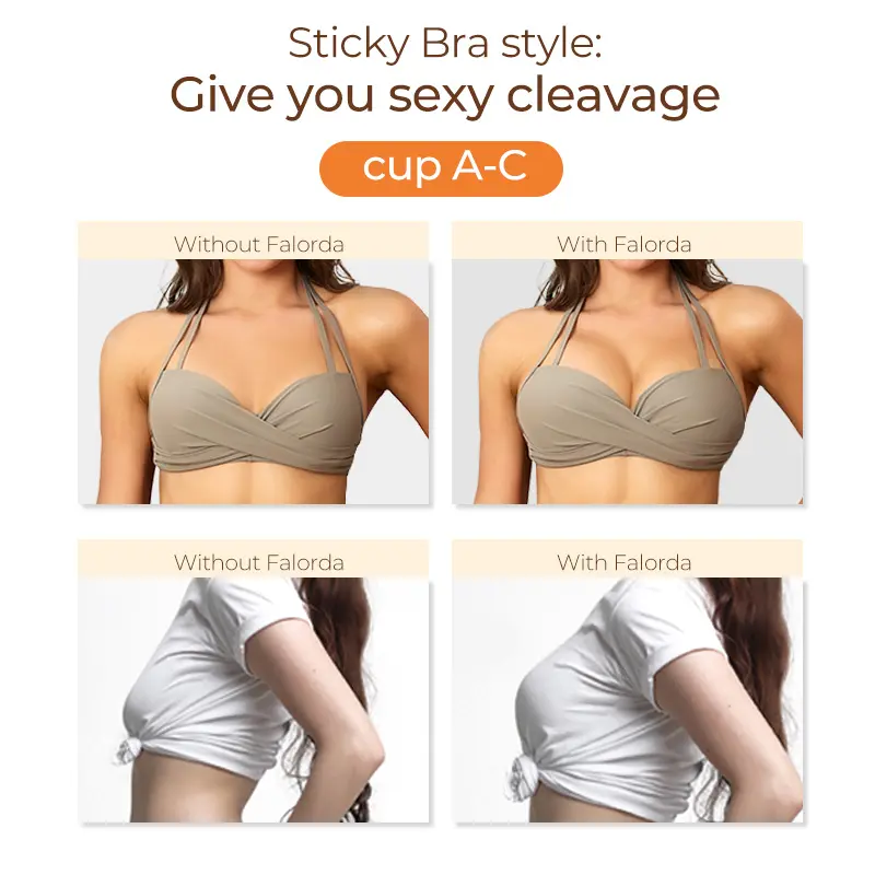 【100% SAFE MATERIAL】Falorda strapless bra is made of sticky and skin-friendly silicone adhesive, High-strength stickiness keeps your chest in a good and comfortable position without worrying about falling off. Easy to wear and peel off, good stickiness does not cause any pain to the skin.