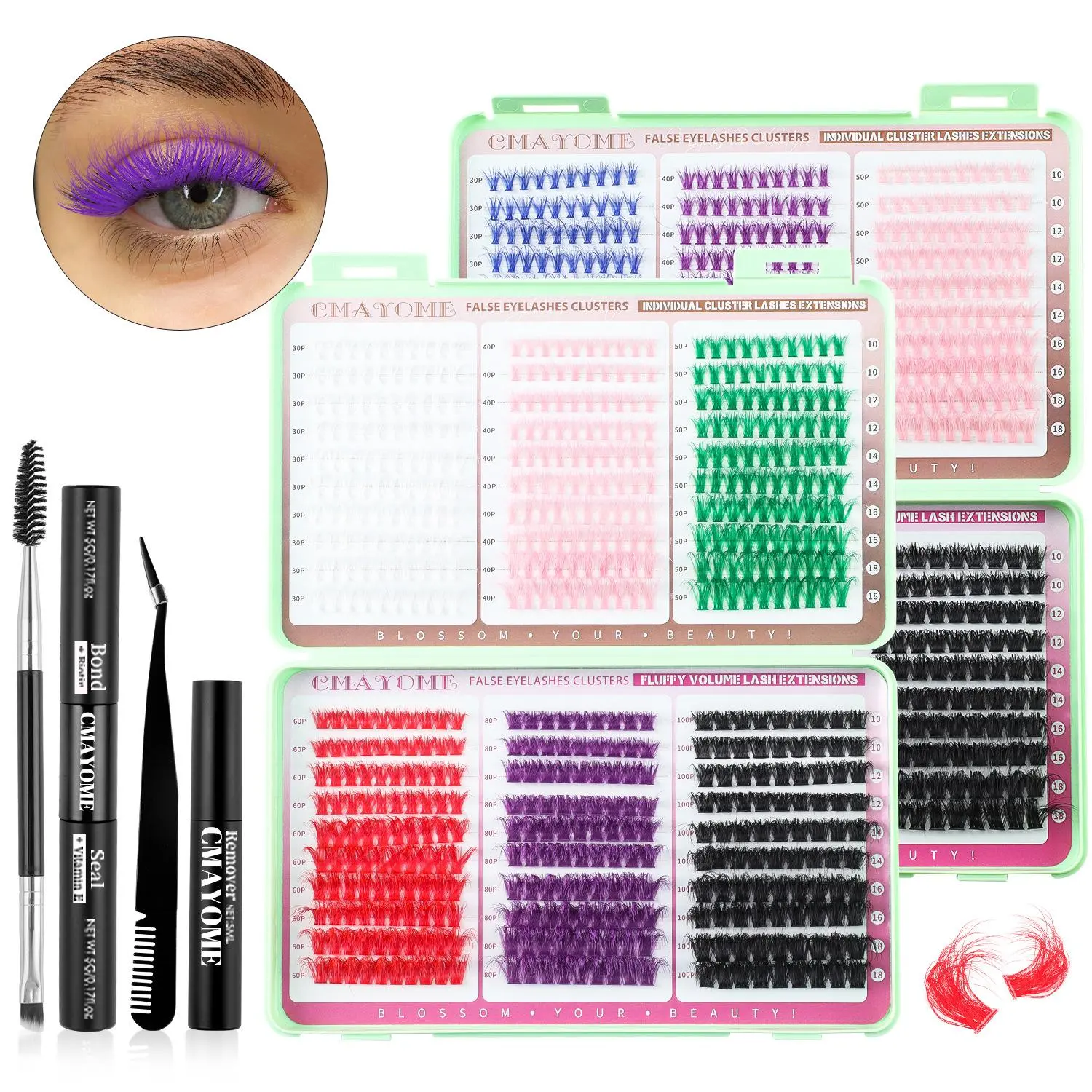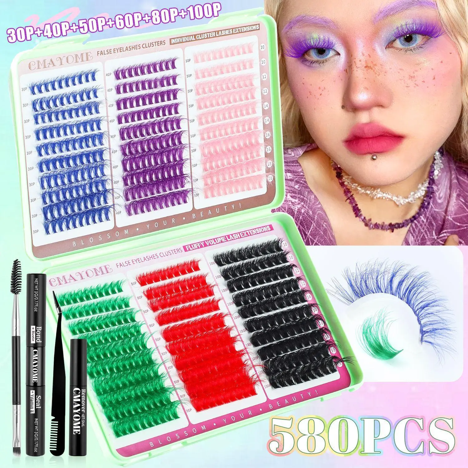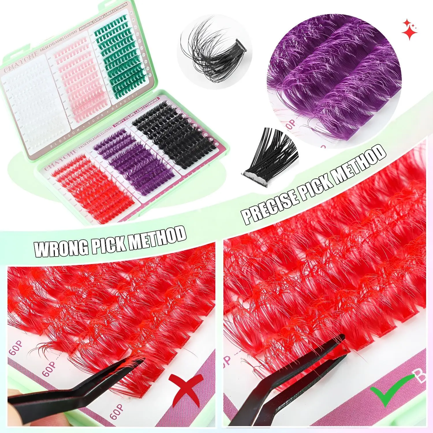 【Color Variety】: Experience a stunning collection of colorful individual false eyelashes that add vibrancy to any makeup application.