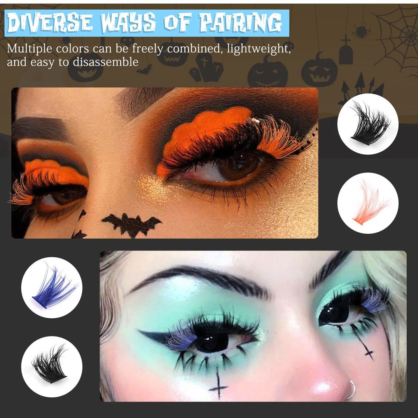 【Exaggerated Style】: These colorful false eyelashes feature an exaggerated style that enhances your eye makeup, making a bold statement.