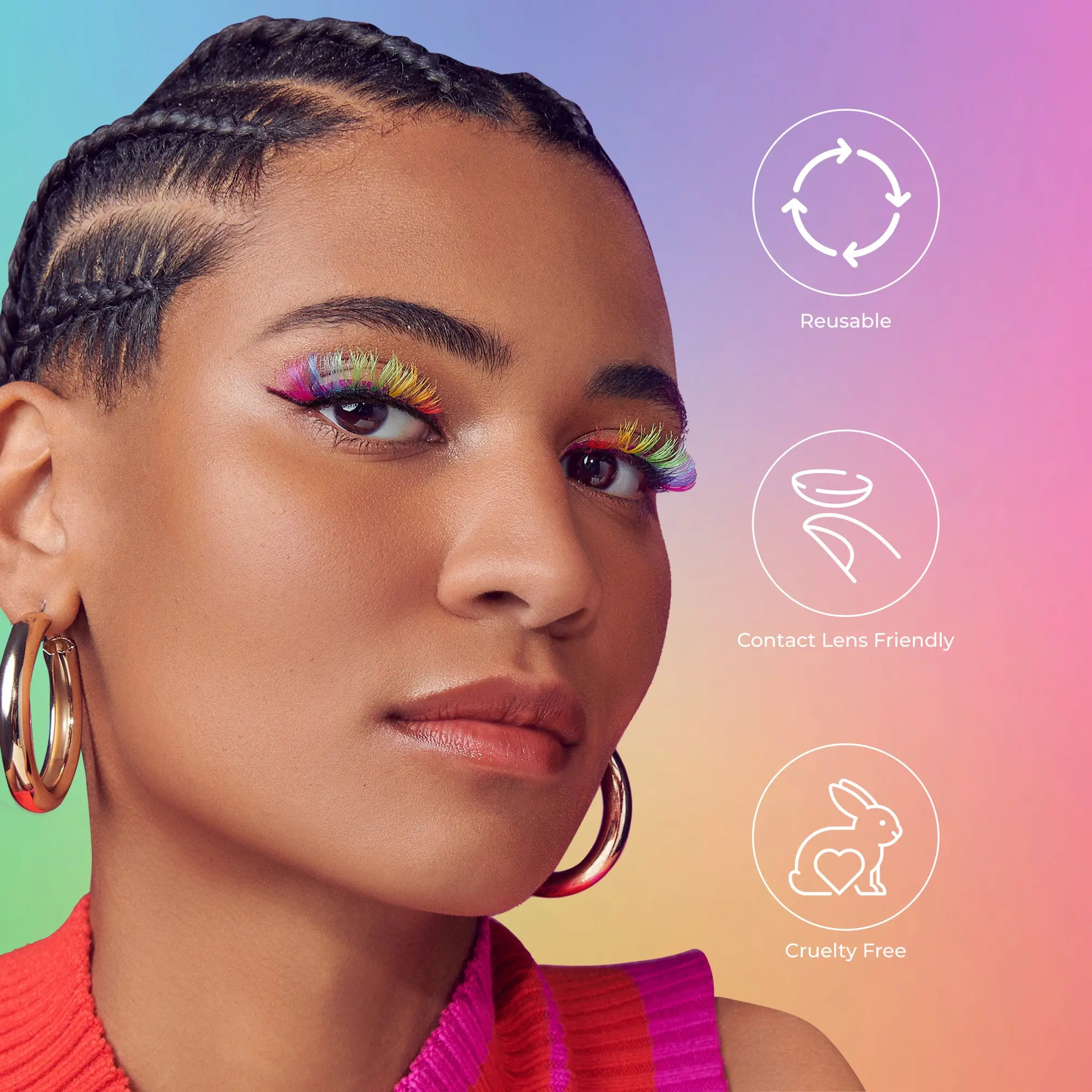 ·Style âLive Proudâ features one pair of 14mm medium length glittery lashes with light volume and a full-color rainbow effect - adhesive sold separately