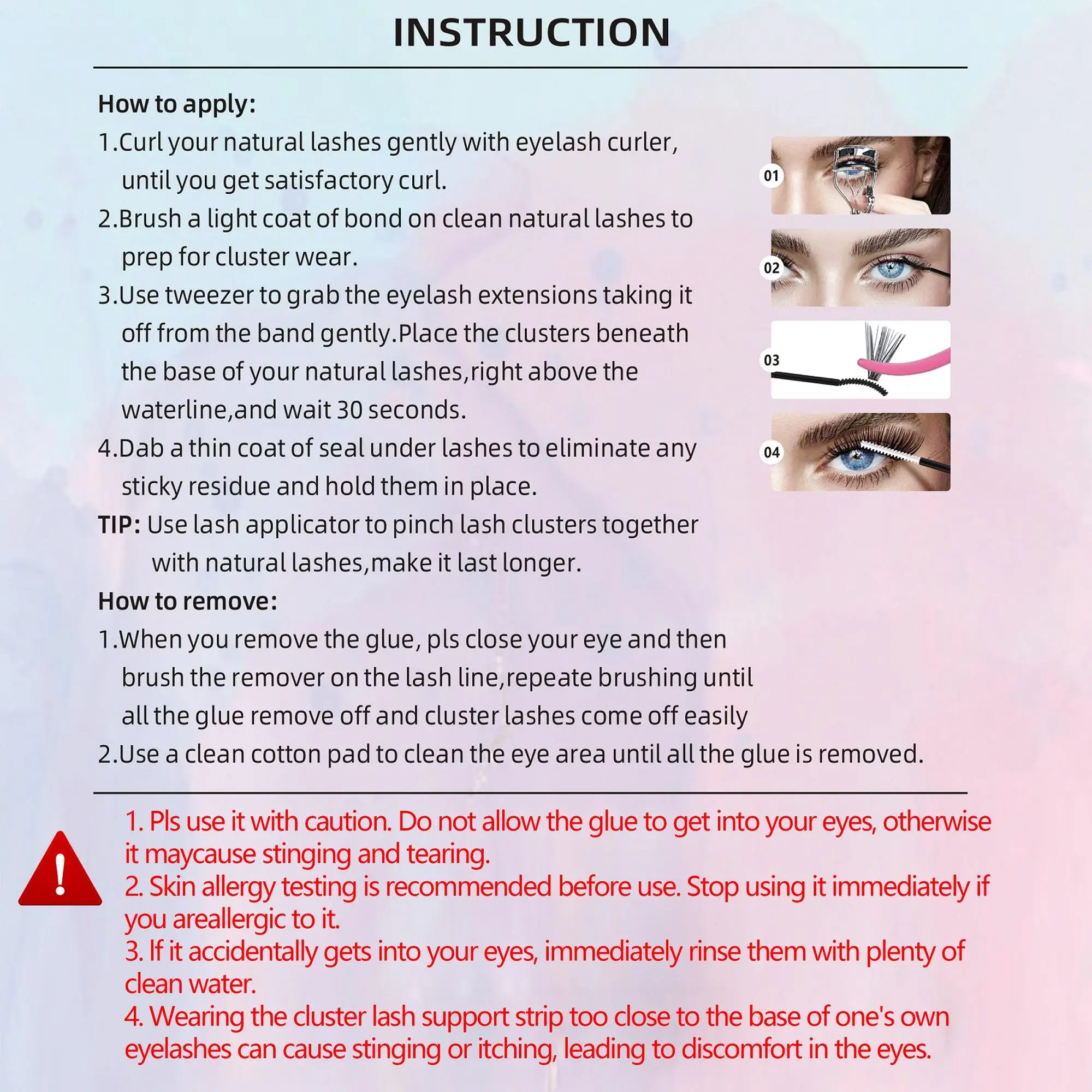 I was very disappointed in this product and I am considering asking for a refund. First of all this tiok forever to get shipped to me and the lashes are of poor qualit. They fall apart when you take them off the tape and the lashes are going in several different directions.
