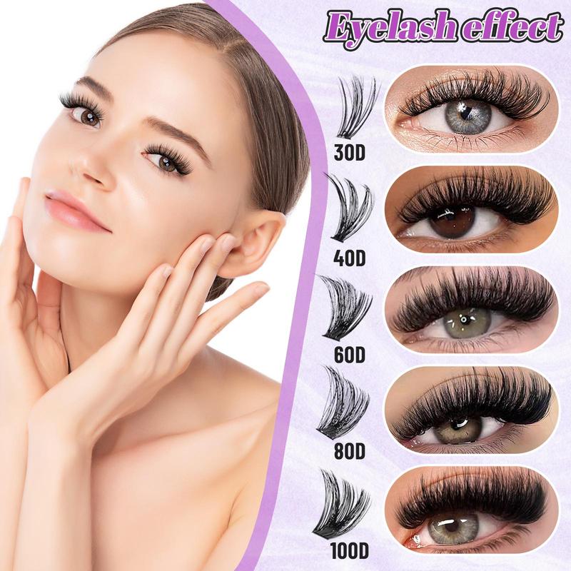 5. False Eyelashes Kit, 1 Box Individual False Eyelashes with Eyelash Extension Glue & Tweezers, Self Grafting Curl Eyelashes, Eye Makeup Enhancement False Eyelash Set, Cosmetic, Lash Clusters Kit, DIY Eyelash Extensions, Natural Eyelash Extensions