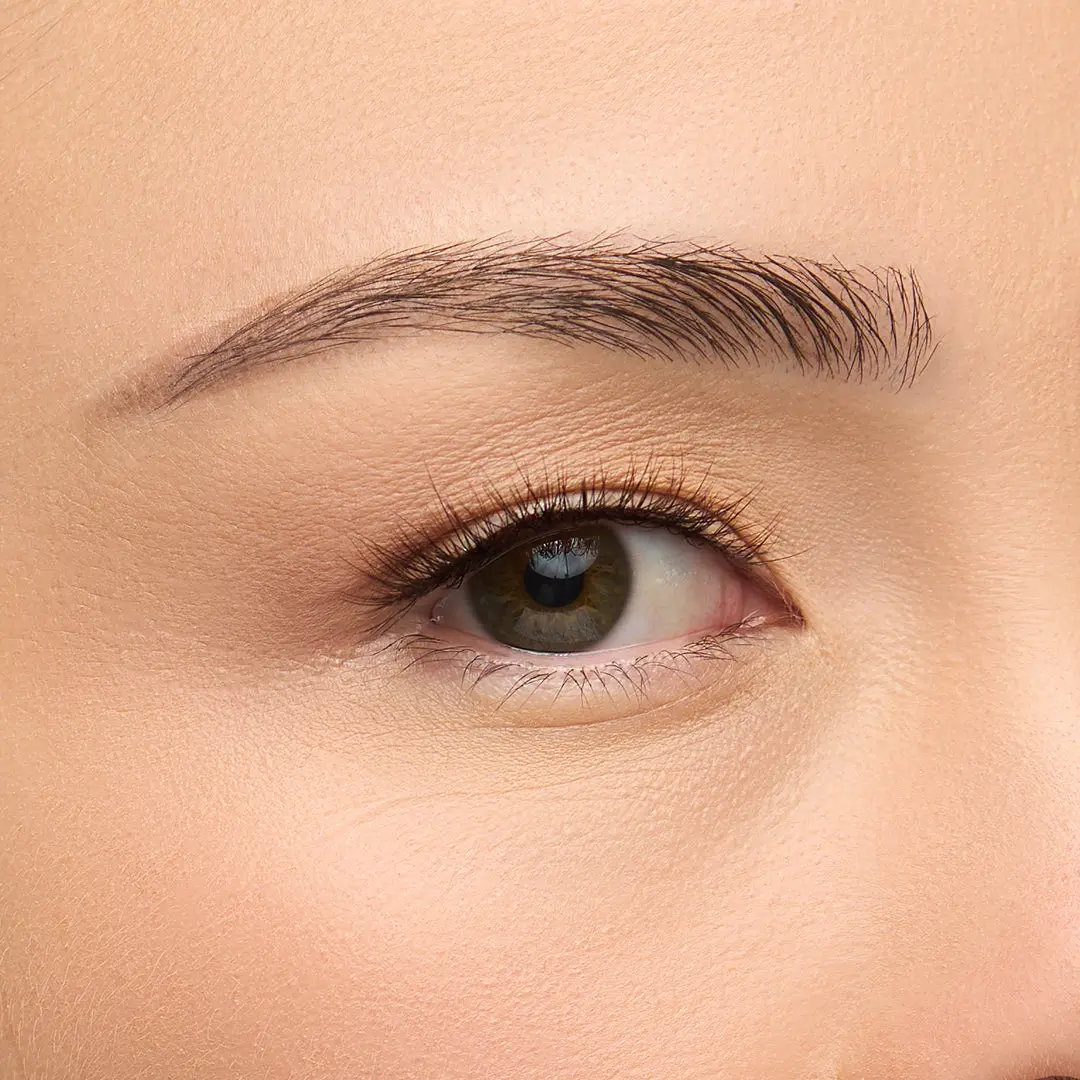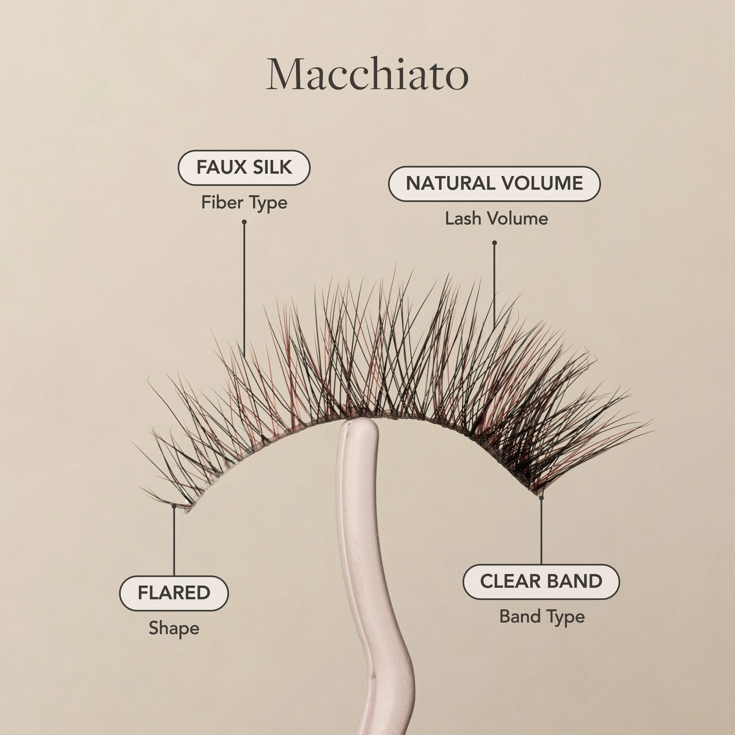 A short, natural lash with denser outer corners and wispy texture for an everyday look, featuring a unique blend of black, brown, and red wine fibers for natural dimension.