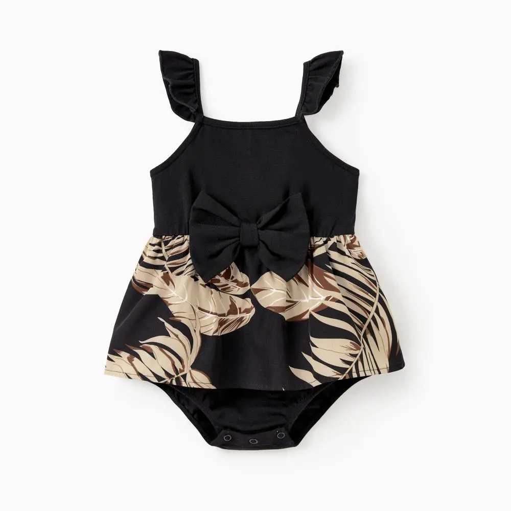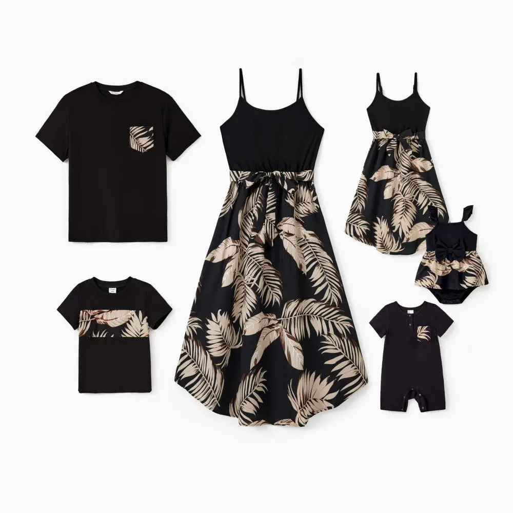 ·Product Introduction: Fashionable summer dress with leaf pattern for the whole family.