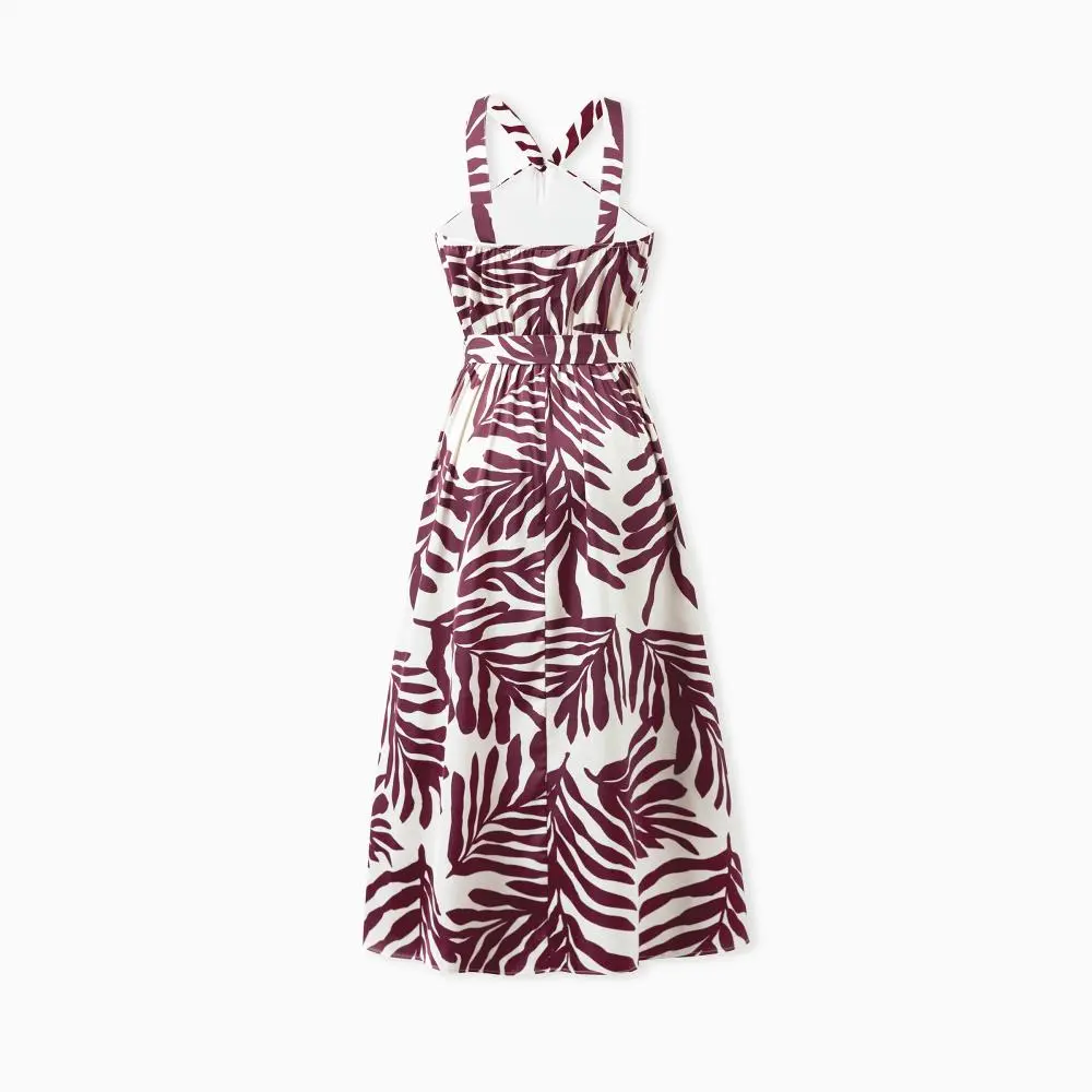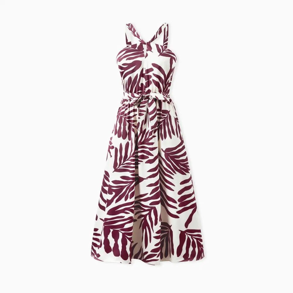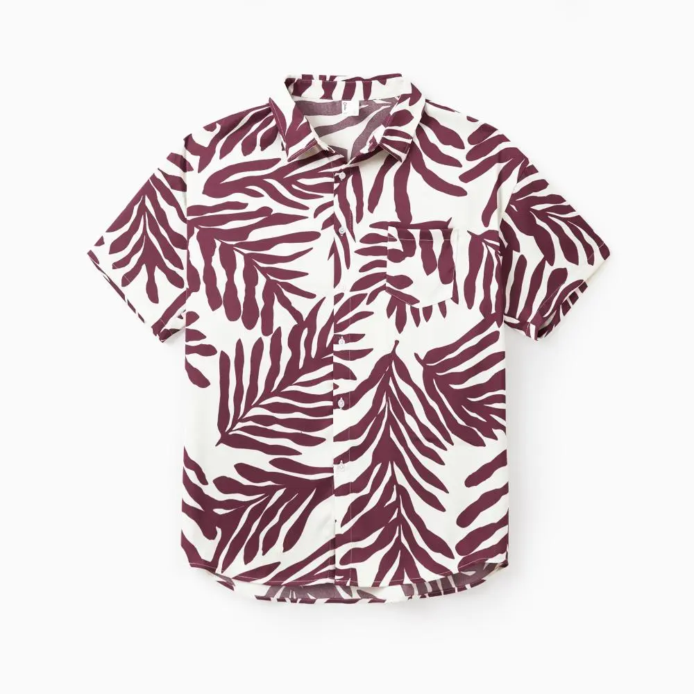 ·Product Introduction:Vibrant wine red family matching vacation set exuding exotic charm.