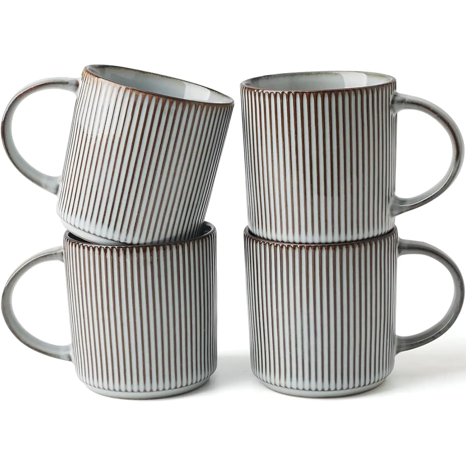 This stunning mug set is made of 100% lead-free glaze and Double Reactive glaze. (Reactive glaze is when multiple colors of glaze react through high temperature firing to combine and create a new dreamy glaze color). The edge of each cup is designed with raised vertical stripes with bright colors to make your table brilliant. It is a stylish dish set with high-level appearance, perfect for a gift. These coffee cups can hold anything you like, including coffee, cocoa, milk, and more. Each dish is made of high-quality stoneware that is dishwasher and microwave safe. Choosing your favorite tableware to make your eating fun and romantic!