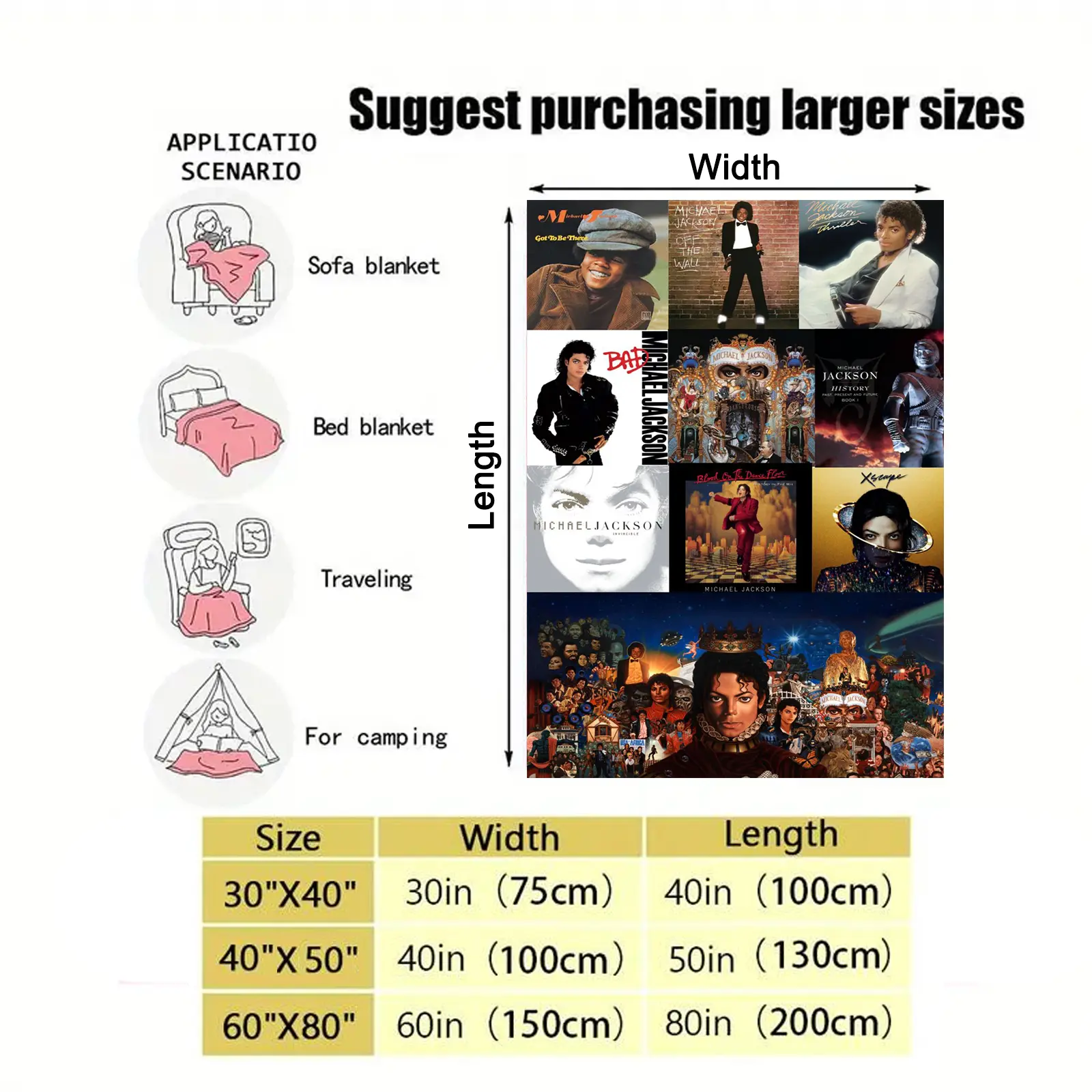 Famous Music Flannel Blanket, Funny Michael Blankets ,Soft and Comfortable Suitable for Sofas, Beds, Camping and Travel - Modern Style.