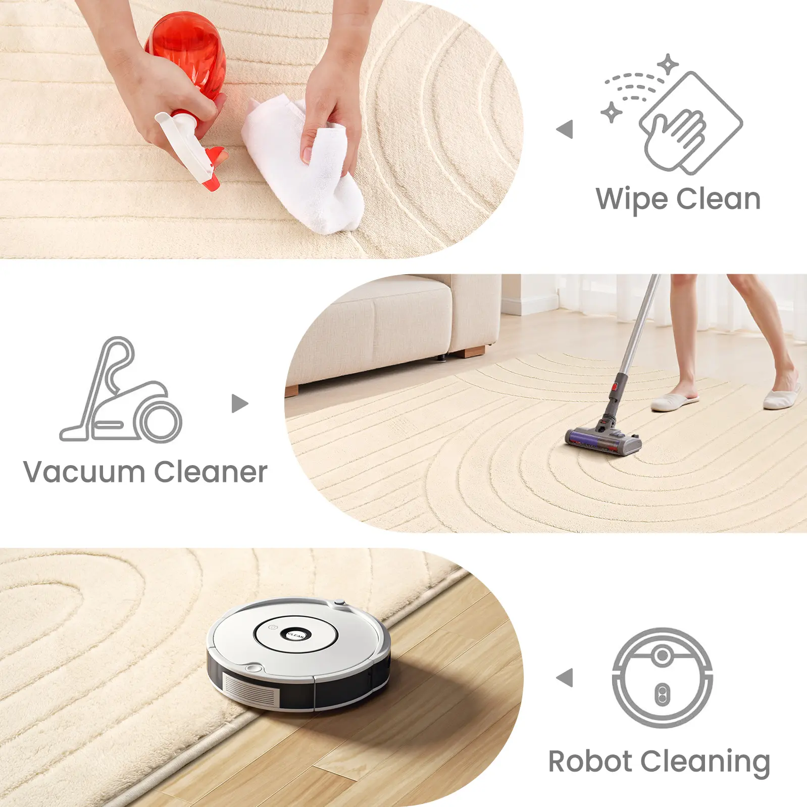 Daily care? Just use a hand-held vacuum! If dust is hard to remove, flip it over and shake it out. For deep cleaning, hand wash with mild detergent and air dry naturally — no direct sunlight needed! 🌿