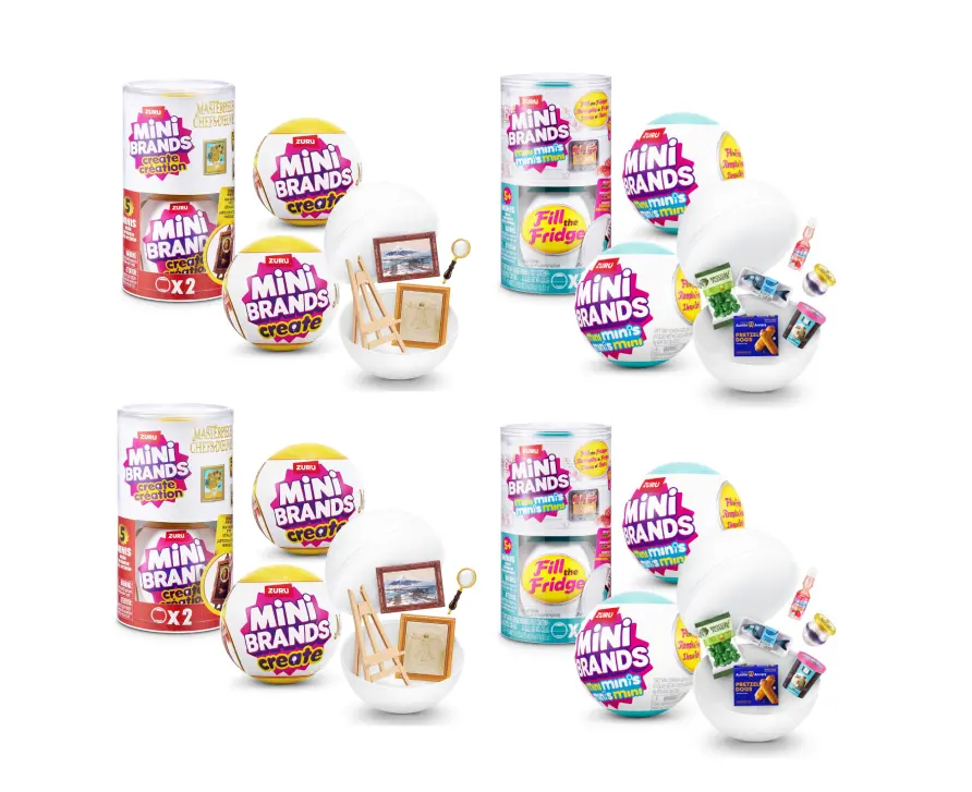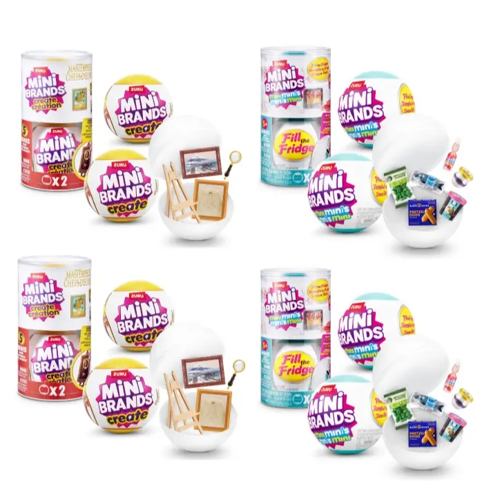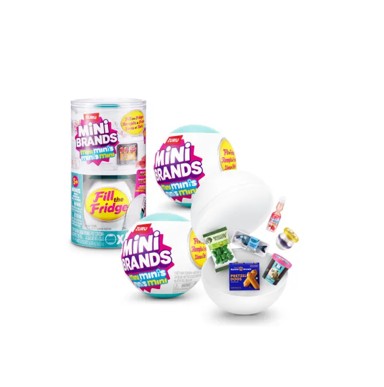 Mini Brands Fill-the-Fridge Capsules 2-Pack (x2) Stock your mini fridge with unbelievably realistic tiny groceries! Crack open each capsule to reveal detailed foods, drinks, and accessories — the perfect mix of satisfying organization and surprise excitement