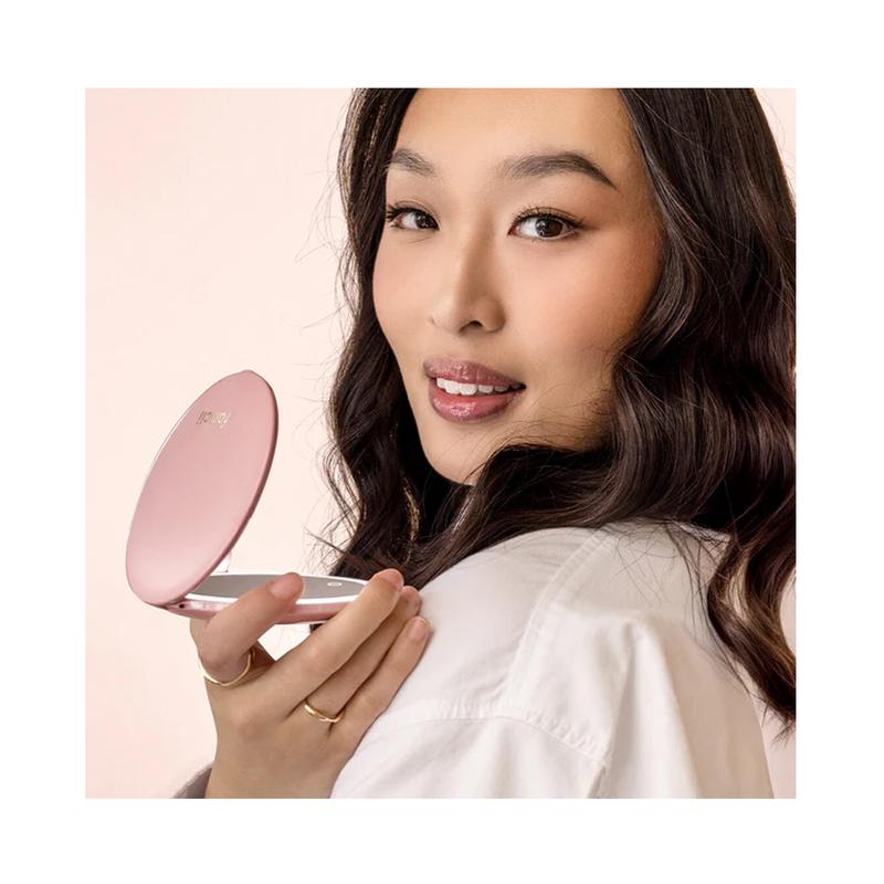 The Mini Taylor compact features a built-in ring light with three adjustable settings and twice the brightness of standard compacts. It delivers flawless lighting for touch-ups anytime, anywhere. This ensures your makeup looks perfect, no matter the time or place. The innovative design focuses on providing the best lighting experience.