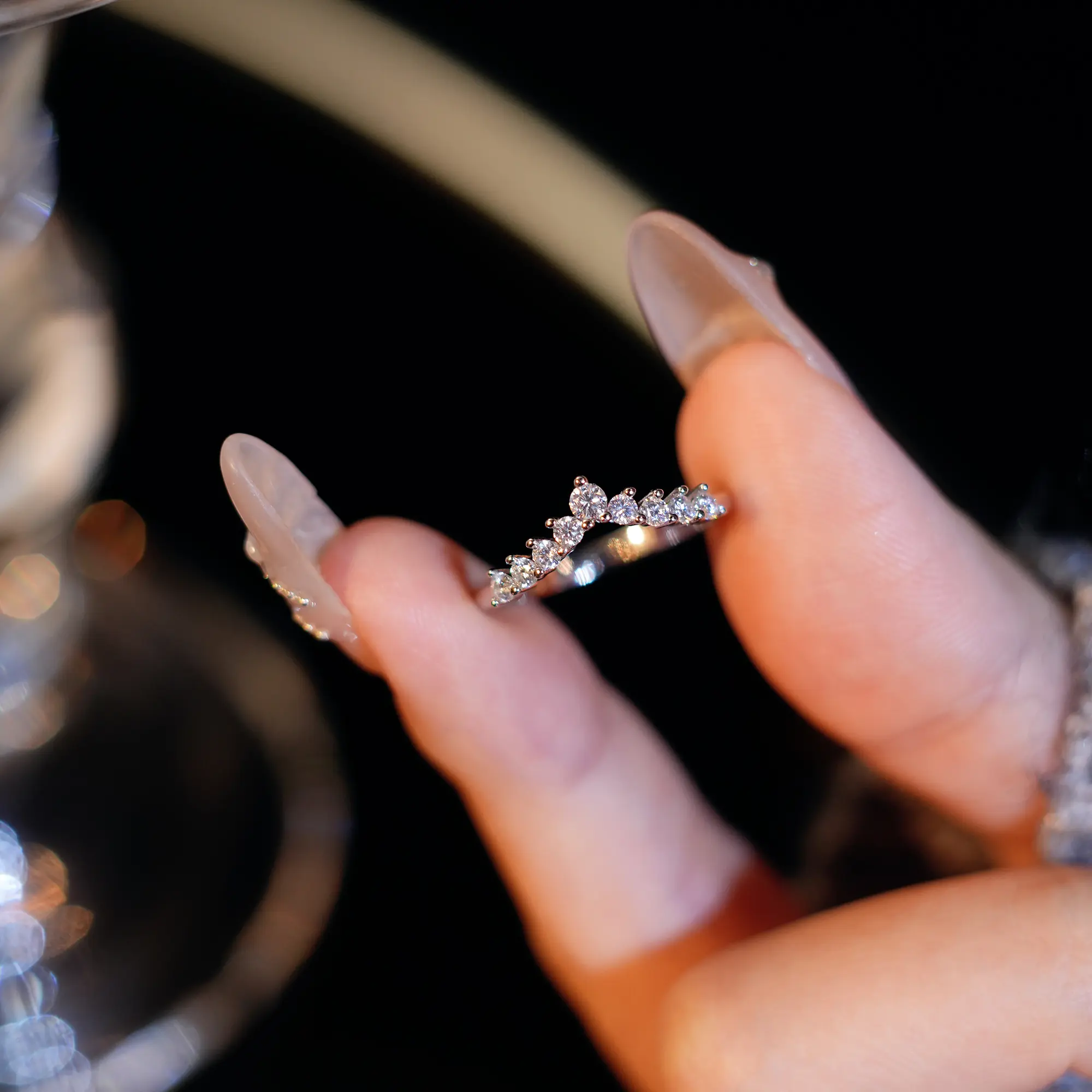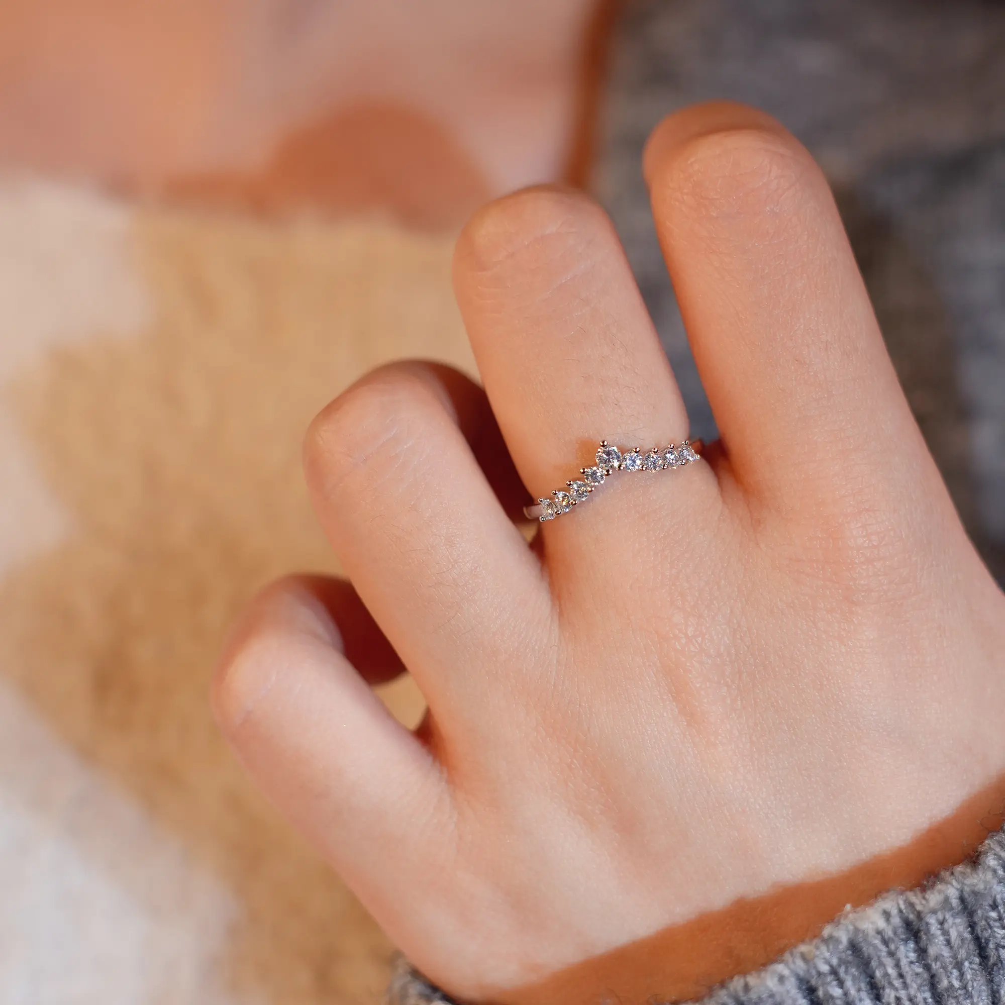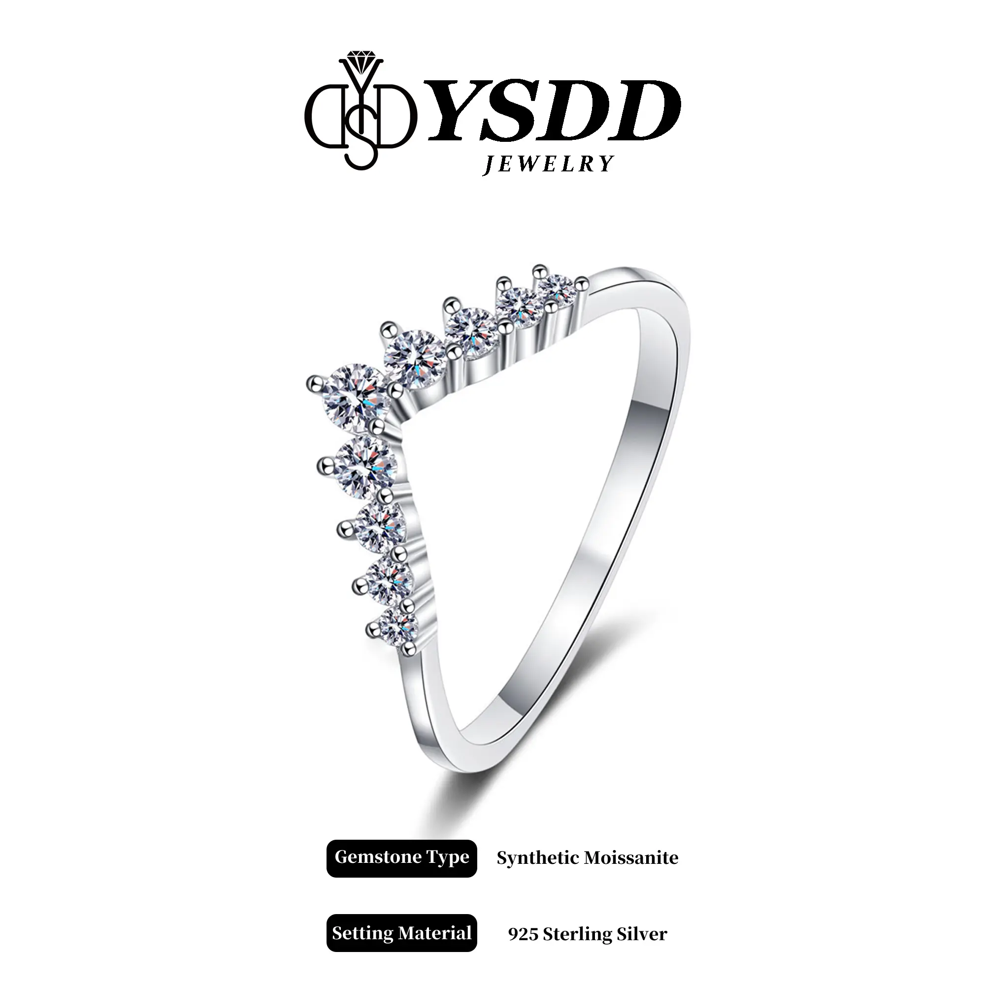 5. 【#410 Wishbone】Fancy V Band vvs Synthetic Moissanite Rings in 925 Sterling Silver