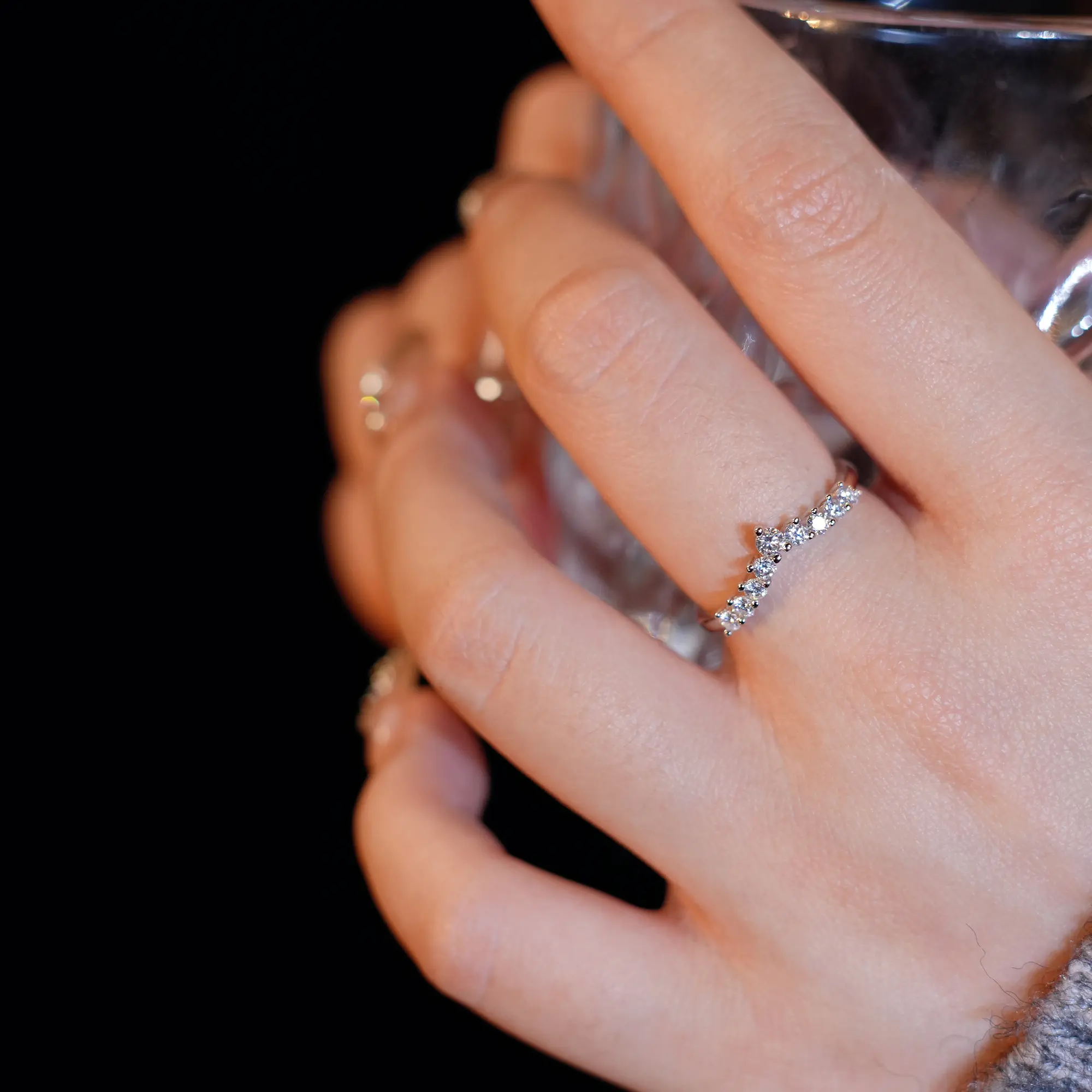 【#410 Wishbone】Fancy V Band vvs Synthetic Moissanite Rings in 925 Sterling Silver