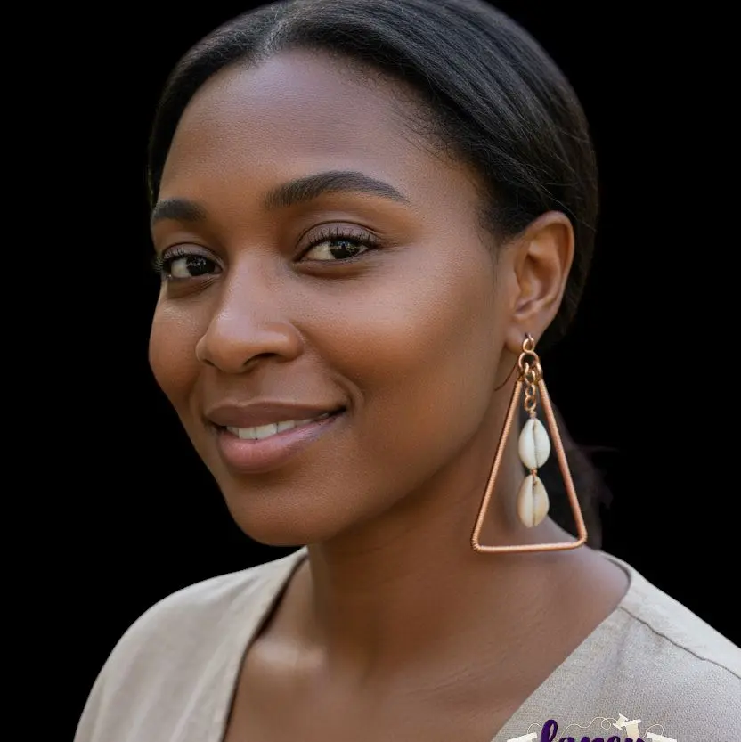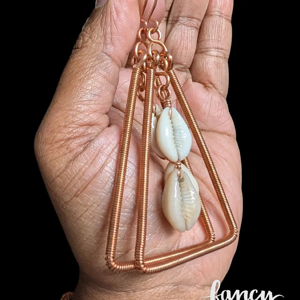 Fancy Wire Triangular Copper and Cowrie Shell Earrings - Stylish and Unique Design - Perfect for Any Occasion