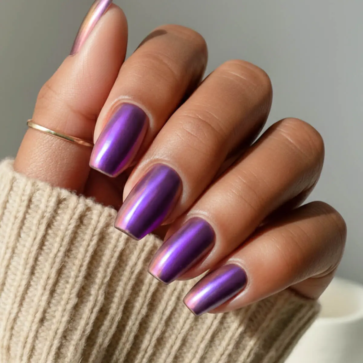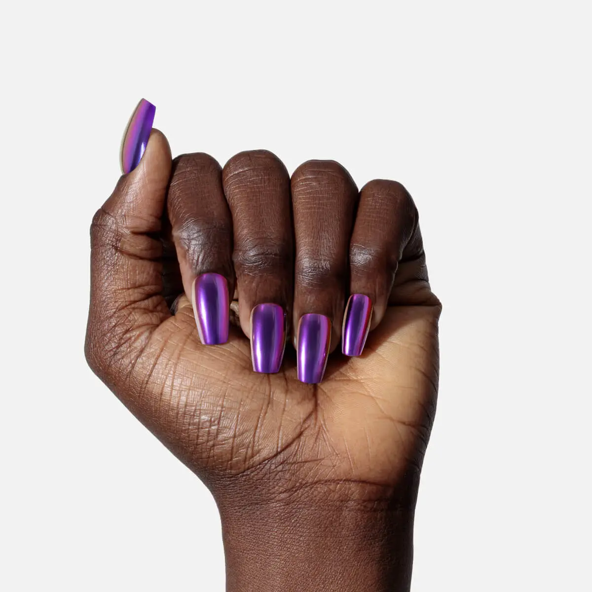 What a gorgeous Chrome purple color and in a coffin shape too they're absolutely beautiful in person