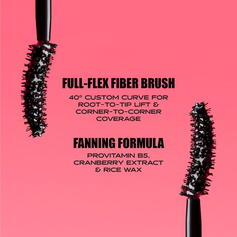 Fan out lashes side-to-side, amplify volume AND multiply the look of lashes for an instant eye- opening effect! The custom-engineered Full-Flex Fiber Brush has a 40° curve that lifts root-to-tip and reaches corner-to-corner. It features naturally derived flex-wave fibers that grab, define and separate lashes, cleanly and evenly. Plus, the fanning formula is buildable, feels weightless and doesn’t clump or flake.