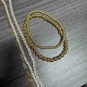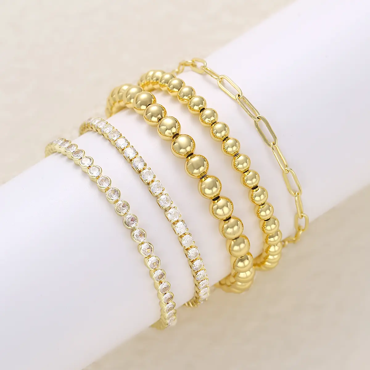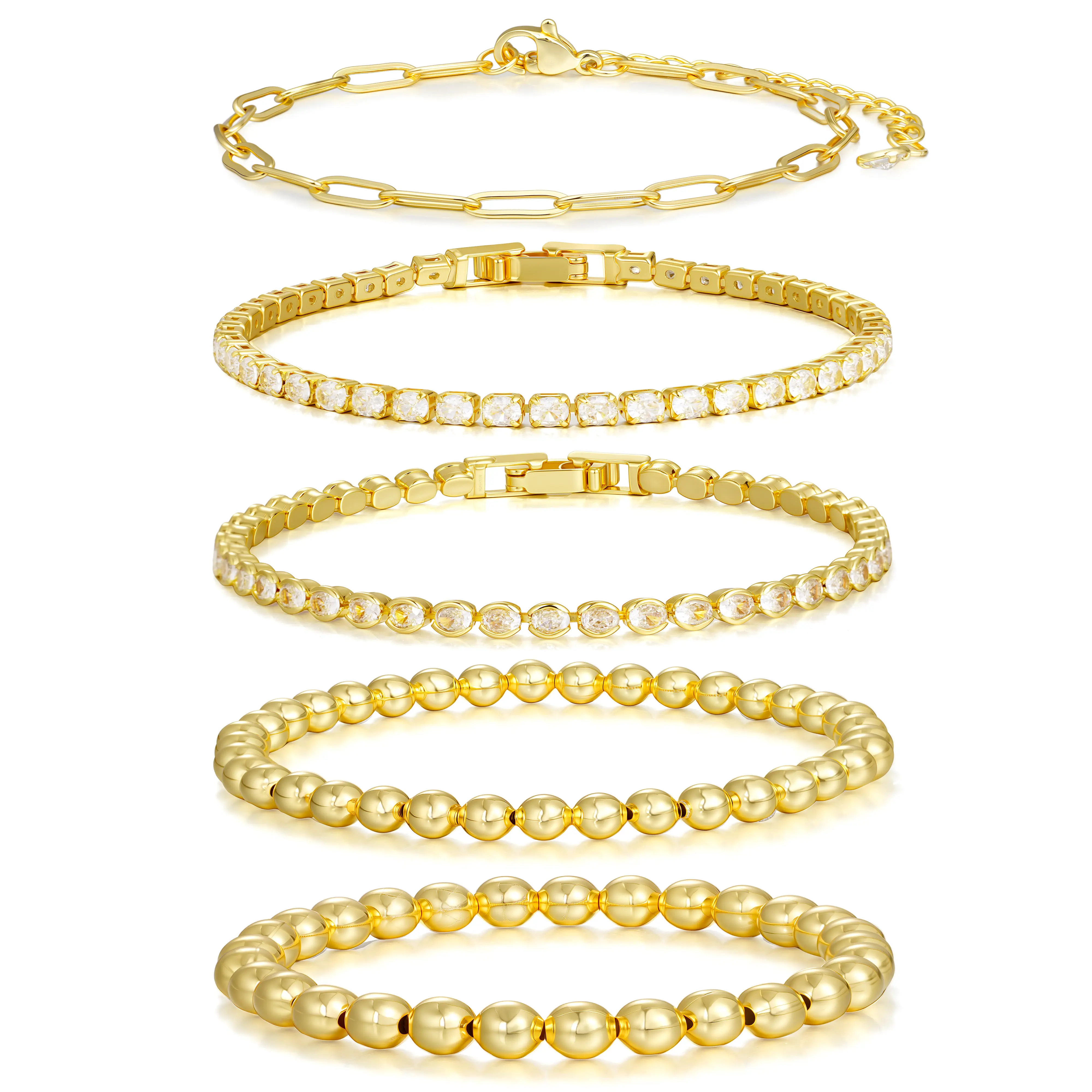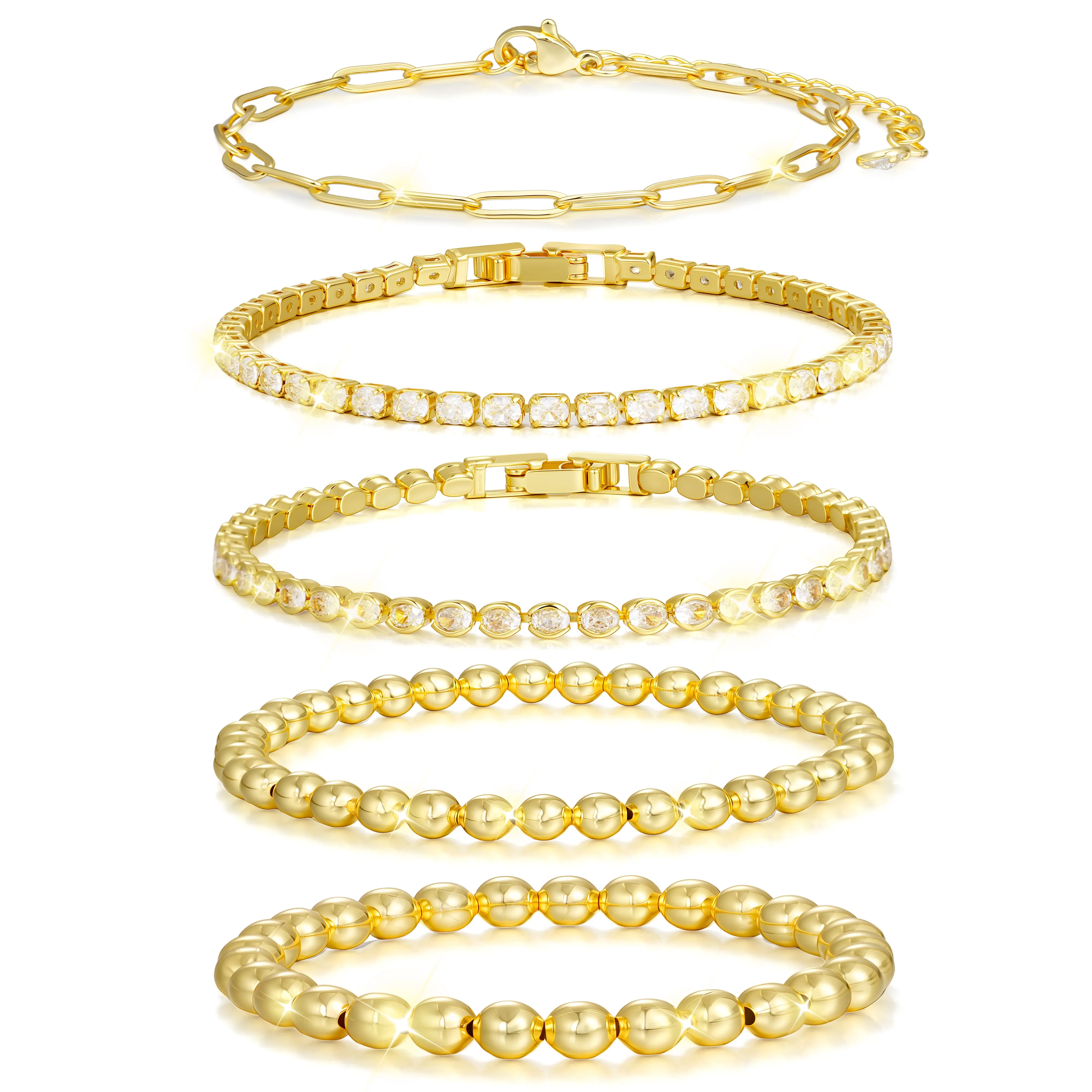Elevate your style with the Fansilver 16K Gold Bracelets! This trendy bangle cuff chain bracelet set includes five pieces, perfect for stacking. Each piece features a gold-plated paperclip bead tennis bracelet and a chunky gold-filled bracelet. Ideal for women who love a chic, modern look.