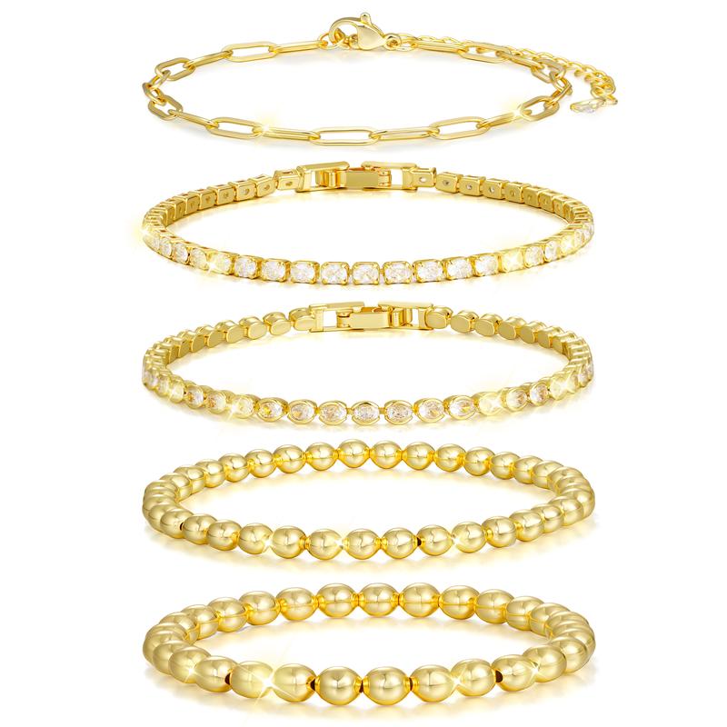 These bracelets make a great gift for any occasion. The set includes five pieces, offering flexibility in styling. Choose the perfect combination of bracelets to suit your mood or outfit. Enjoy the versatility and elegance of the Fansilver 16K Gold Bracelets.