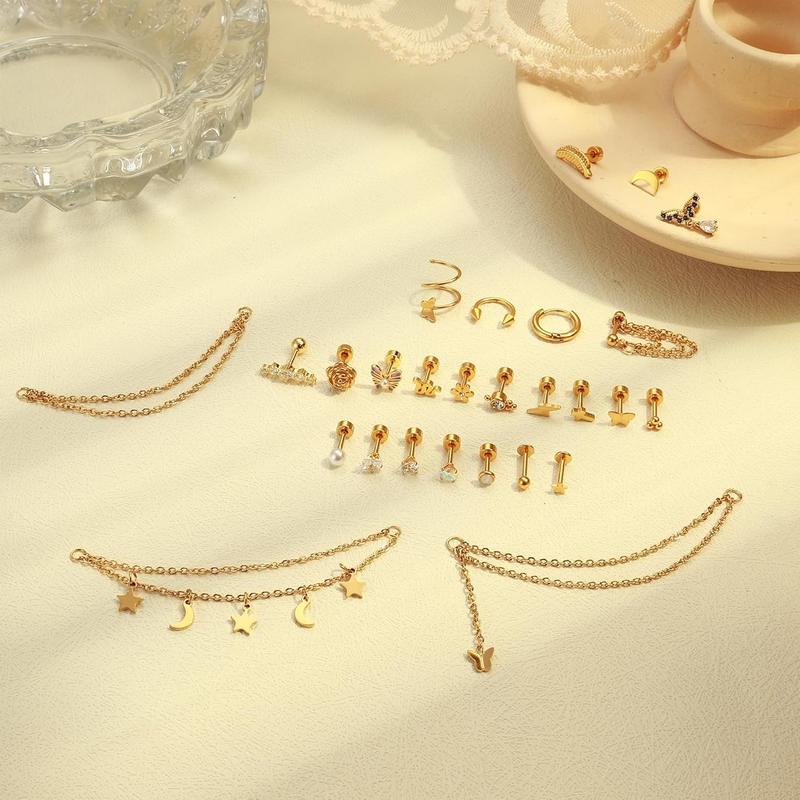 5. Fansilver 27Pcs Flat Back Earrings Hypoallergenic Surgical Steel Stud Earring Stacks Set Dainty Chain Dangle Cartilage Tragus Daith Helix Piercing Jewelry for Women Men Trendy 16G