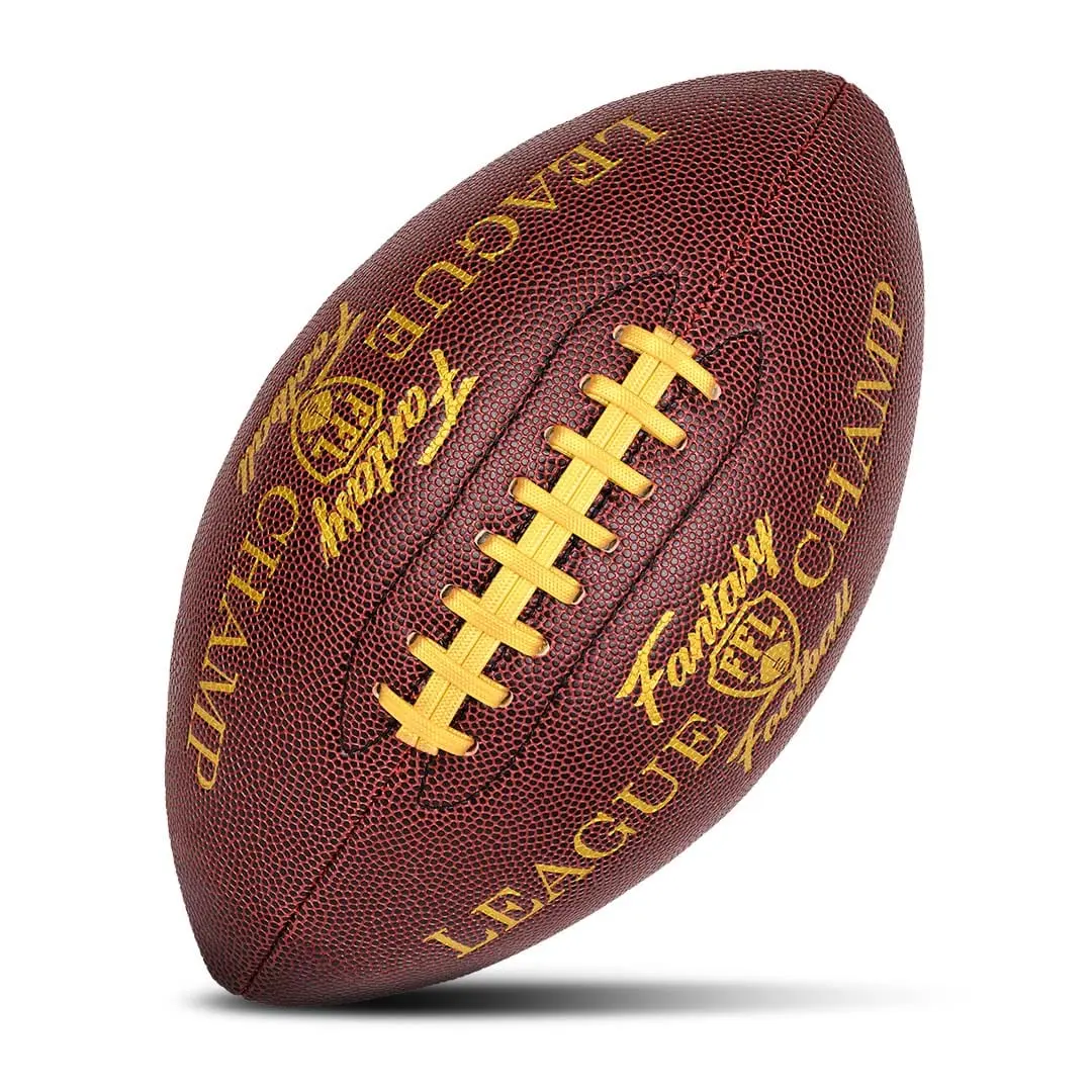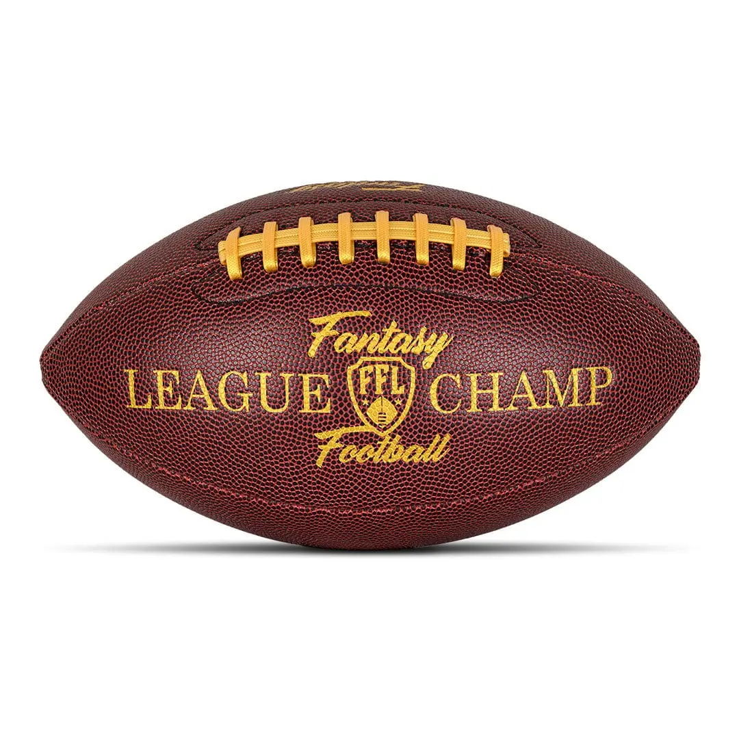 Celebrate your league victory with the Fantasy Champion Football. This authentically sized, faux leather football is richly embossed with "Fantasy Football League Champ" on each side. This piece is crafted to showcase your accomplishment with style. It comes complete with a sleek acrylic stand for easy display, making it the perfect way to showcase your dominance and be the envy of all your league mates.