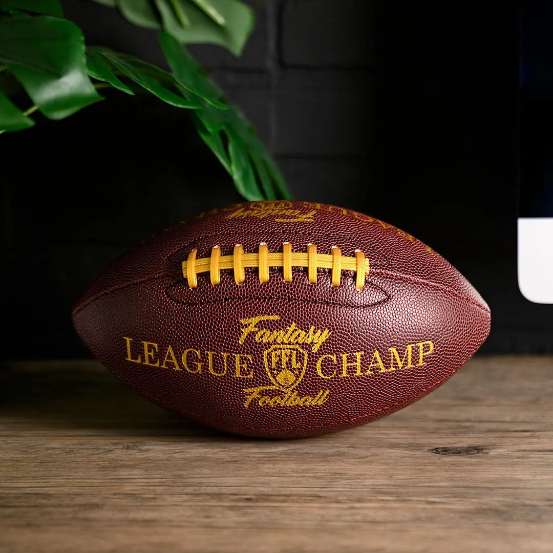 Fantasy Champion Football. This is a FANTASTIC way to reward your league’s champions with a unique and high quality trophy. This football is authentic in size and comes with a nice acrylic display stand. It looks awesome in a trophy case, on a trophy shelf, or on an office desk. If you’re looking for something different for your league winners, this is a fantastic option. I’m truly impressed and looking forward to my league mates seeing the new prize for the 2025 Fantasy Football season.#fantasyfootball #2025 #ffl #champion #fantasychampionfootball #championship #fantasyfootballleague #commissioner #winning