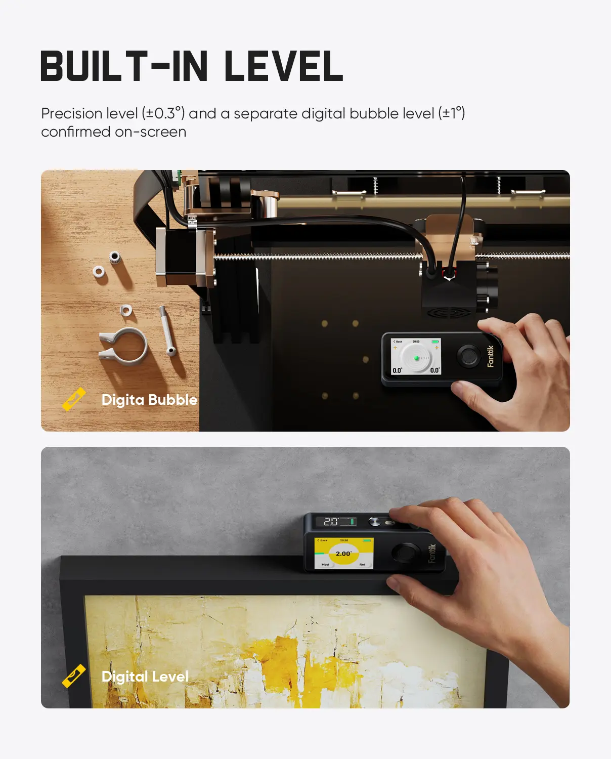 ·6-Unit Switching: A11 Ultra laser distance meters use an advanced laser module and in‑house algorithm for high accuracy. Laser ±0.024 in/ft within 197 ft; wheel ±0.06 in/ft; leveling support with digital laser ruler ±0.3° and bubble level ±1°. Smart switch for 6 metric units mm/cm/m/inch/ft/ft+inch