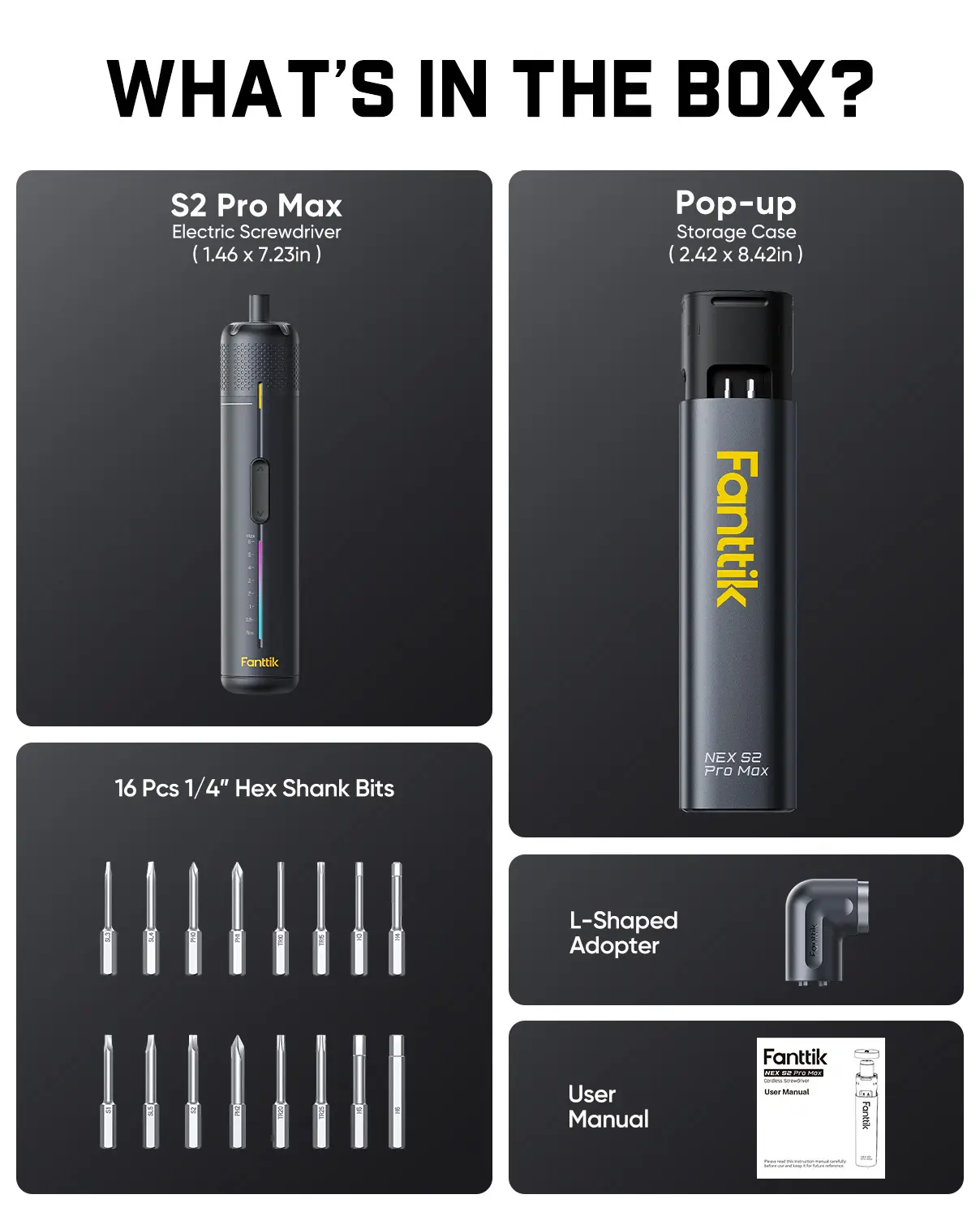 ·Powerful Torque Output: Equipped with a 250 RPM MagnaStorm motor, NEX S2 Pro Max electric screwdriver delivers up to 6N·m of torque, effortlessly handling common household tasks such as computer assembly, furniture installation, and home appliance repairs