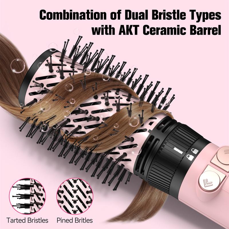 ·Advanced AKT Ceramic & Ionic Technology: Farery hair dryer brush set features an AKT ceramic-coated brush head with negative ions to minimize frizz and static. This design enhances shine, speeds up drying, reduces heat damage, and maintains moisture balance. Even heat distribution gives you a healthier style for smooth and shiny hair.