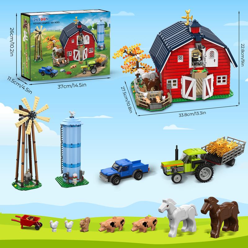 INSOON Western Farm Barn House Building Set with Windmill Tractor Horse Animals for Adults Teens Boys Girls 8 -12+
