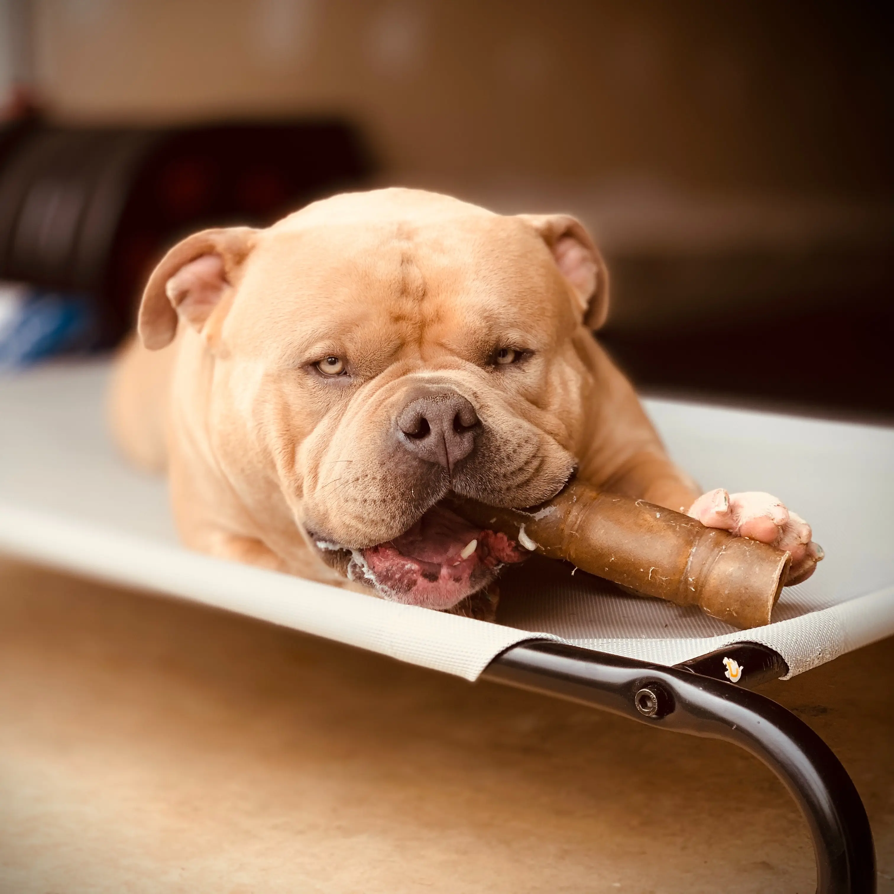 A fellow dog owner told me about farm hounds. It’s actual parts of animals with no added ingredients and a great way to use parts of animals. My dog loves these bones and not only are they long lasting but leaves no messes on my carpets.