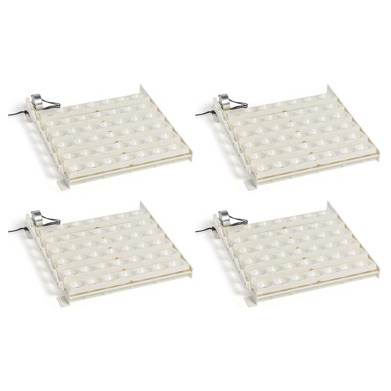 Brood better chicks without all the effort thanks to the 4-Pack Farm Innovators Automatic Egg Turner. These automatic egg turners are a must-have for any professional brooder. Designed with 41 large egg cups, each egg turner automatically turns the eggs completely every 4 hours to eliminate manual handling and improve the hatching rate. Combine a small quail egg tray to the egg turner to fit even more eggs (sold separately). When necessary, use the included thermometer to monitor your eggs more closely. Place the automatic egg turner at the bottom of Farm Innovators 2100, 2150, 2200, or 2250 incubator models. The egg rails snap out of the incubator so that you can easily clean the piece of equipment after you're done using it. You can even throw this egg turner in the dishwasher for an efficient clean. Make sure all your chicks reach the hatching stage every time with the 4-Pack Automatic 41 Spot Egg Turner for Improved Hatching from Farm Innovators.