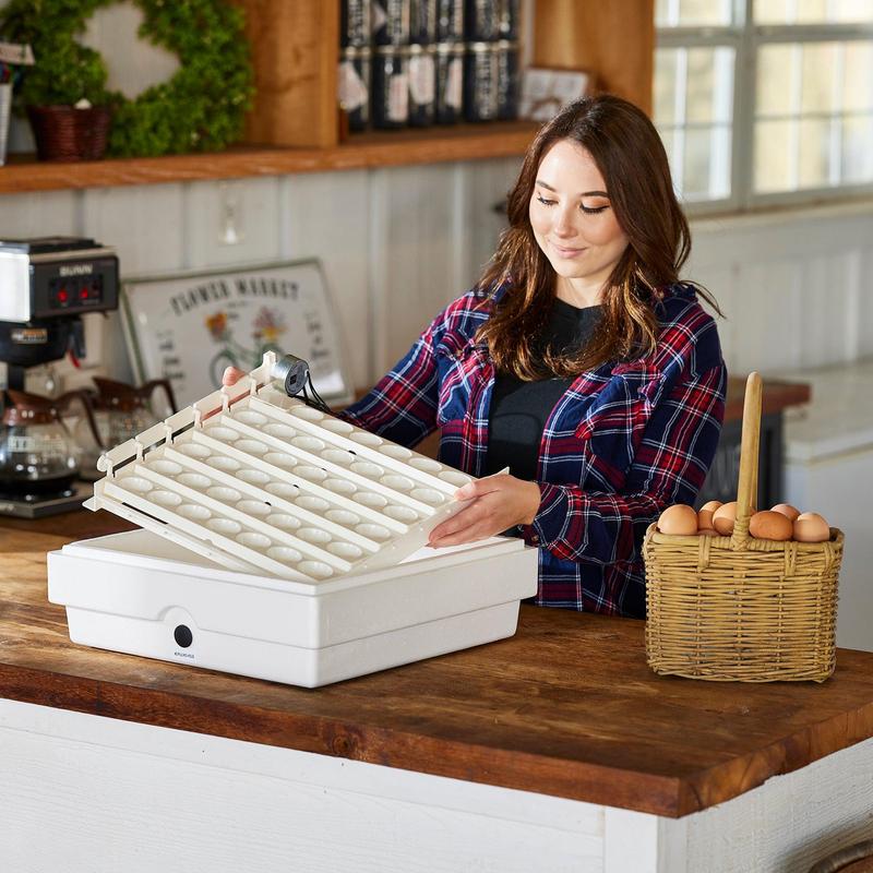Egg rails snap out of the incubators for easy cleaning; dishwasher safe